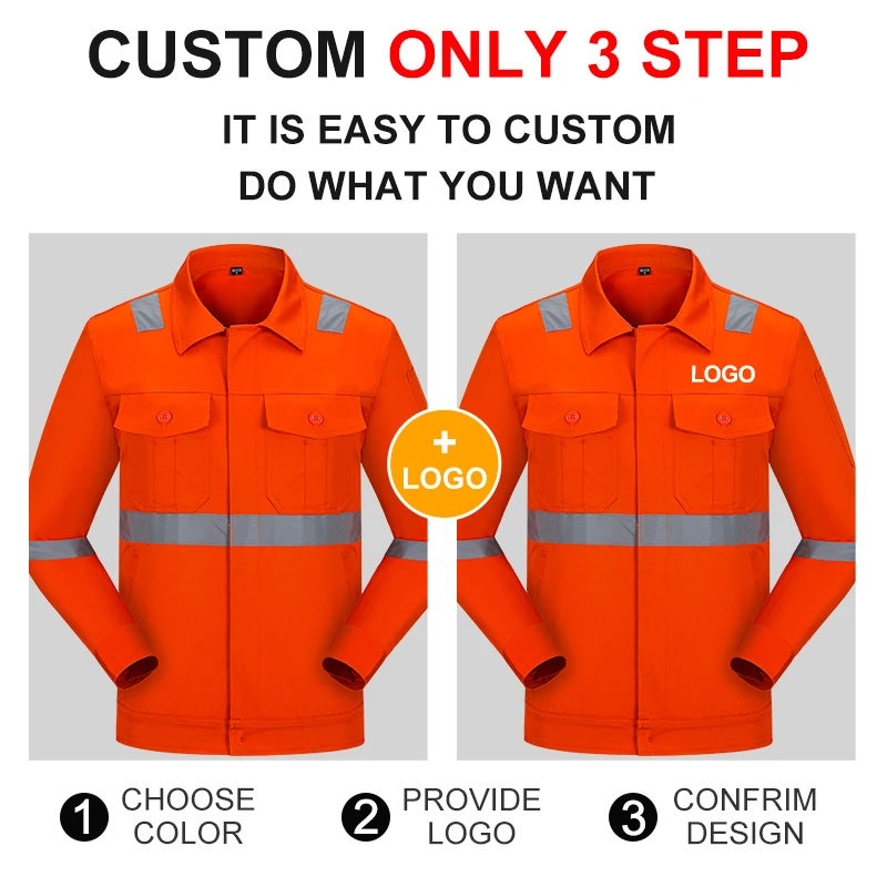 High-Vis Multiple Reflective Strips Poly-Cotton Durable Multi-Pocket Construction Factory Workshops Custom Logo Work Wear Set