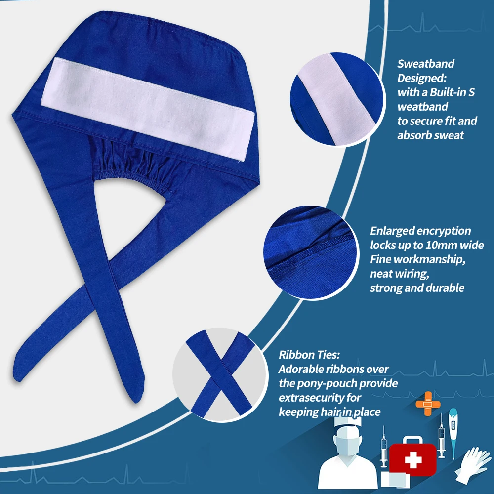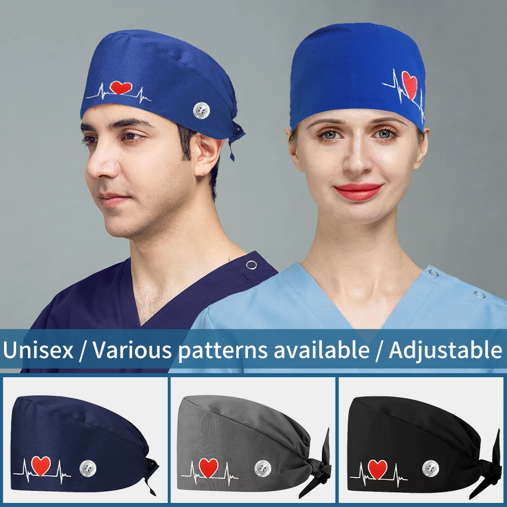 Fashional Custom Logo Scrub Hats With Sweatband Pet Working Medical Caps Unisex Women Dental Surgical Nurse Scrub Cap