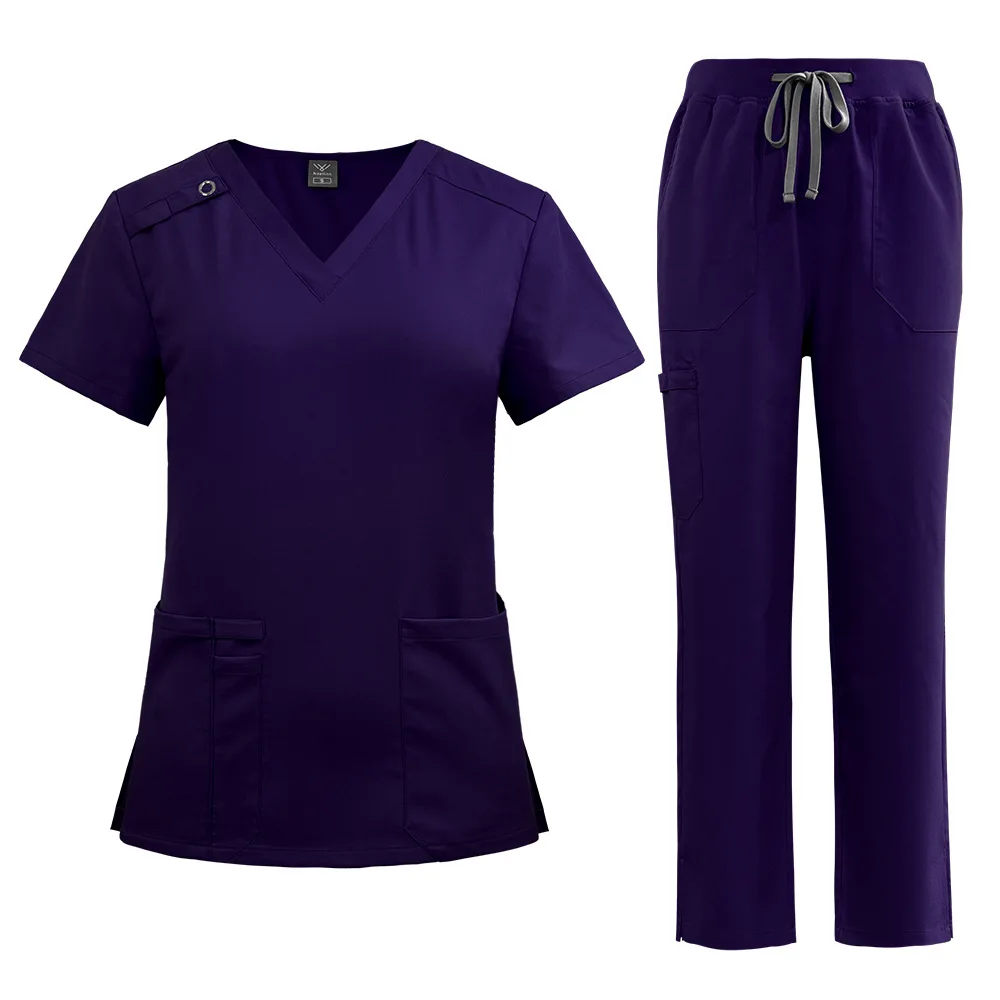 High End Breathable Soft Dental Hospital Uniform v Neck Spandex Scrubs Stretch Nurse Doctor Unisex Scrubs Sets