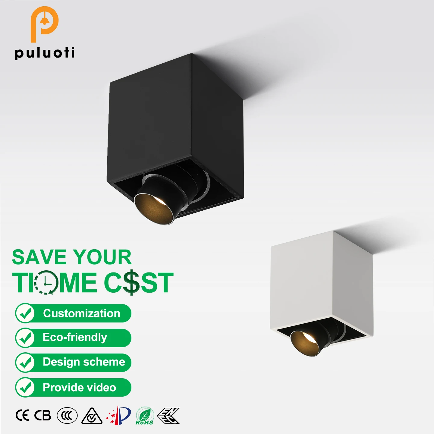 PULUOTI Commercial Zoomable Cob LED Spotlight 15° 24° 38° 60° Surface Mounted Modern Design Aluminum Shop Light System