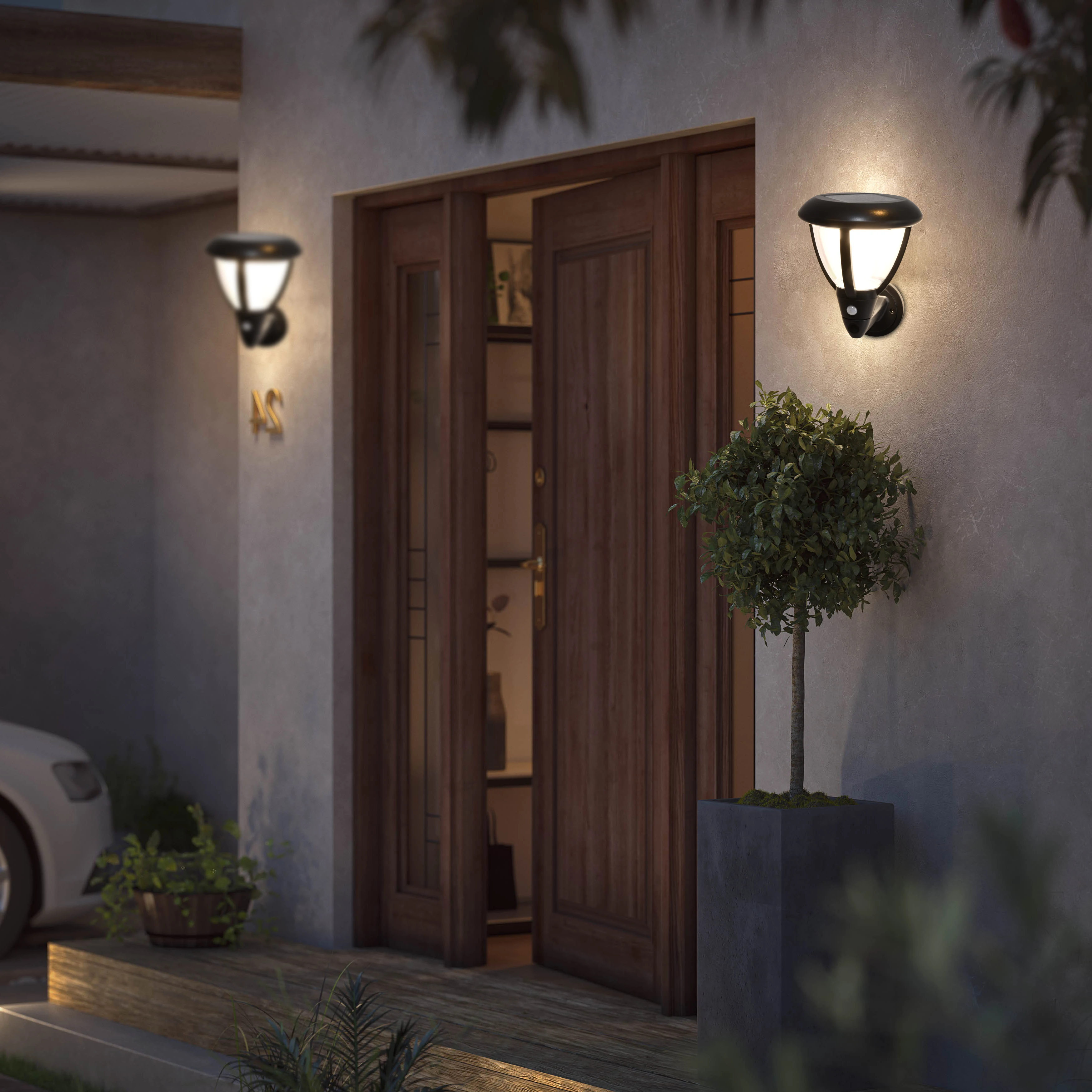 Vertak IP44 Waterproof Light Sensor Solar Powered Wall Bracket Light Human Body Sensing 0.55W Wall Lights for Home