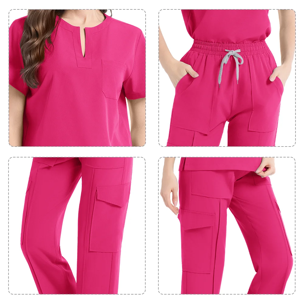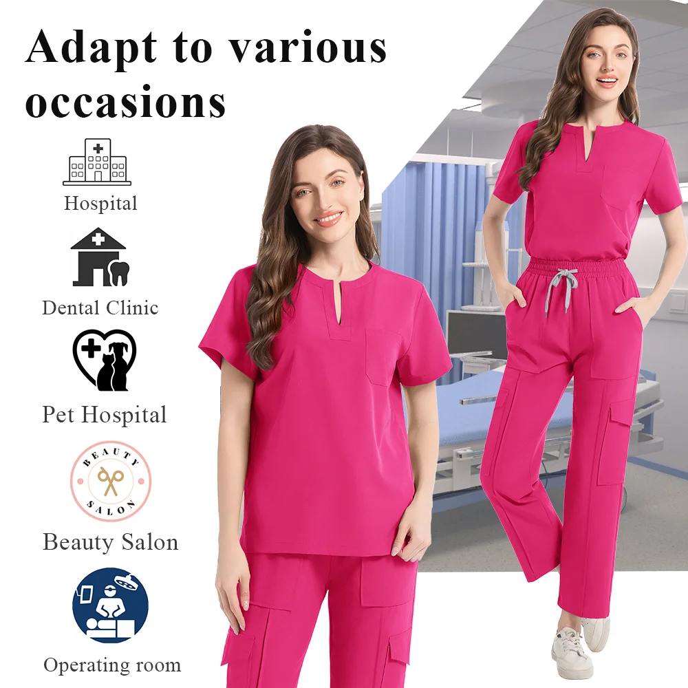Medical Scrubs Set XL Size Knitted Fabric Spandex Surgical Tops for Doctors Nurses Hand Washing Resistant Hospitals Uniforms