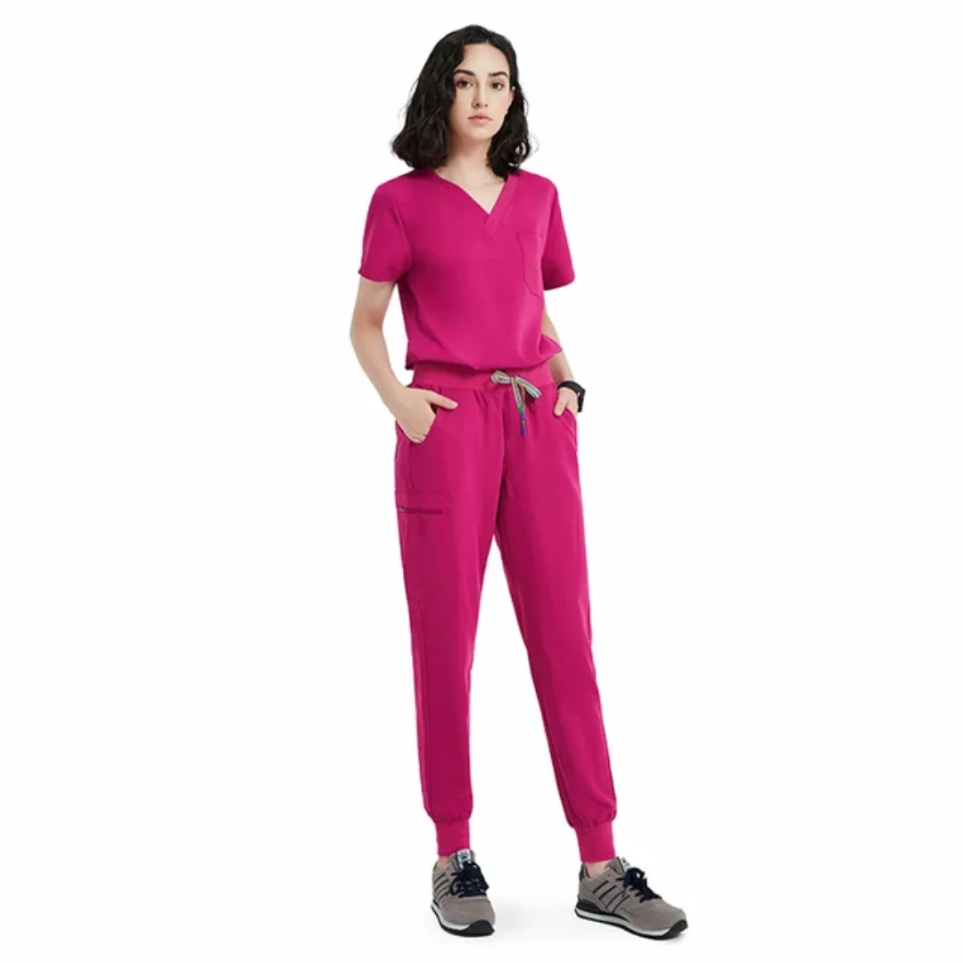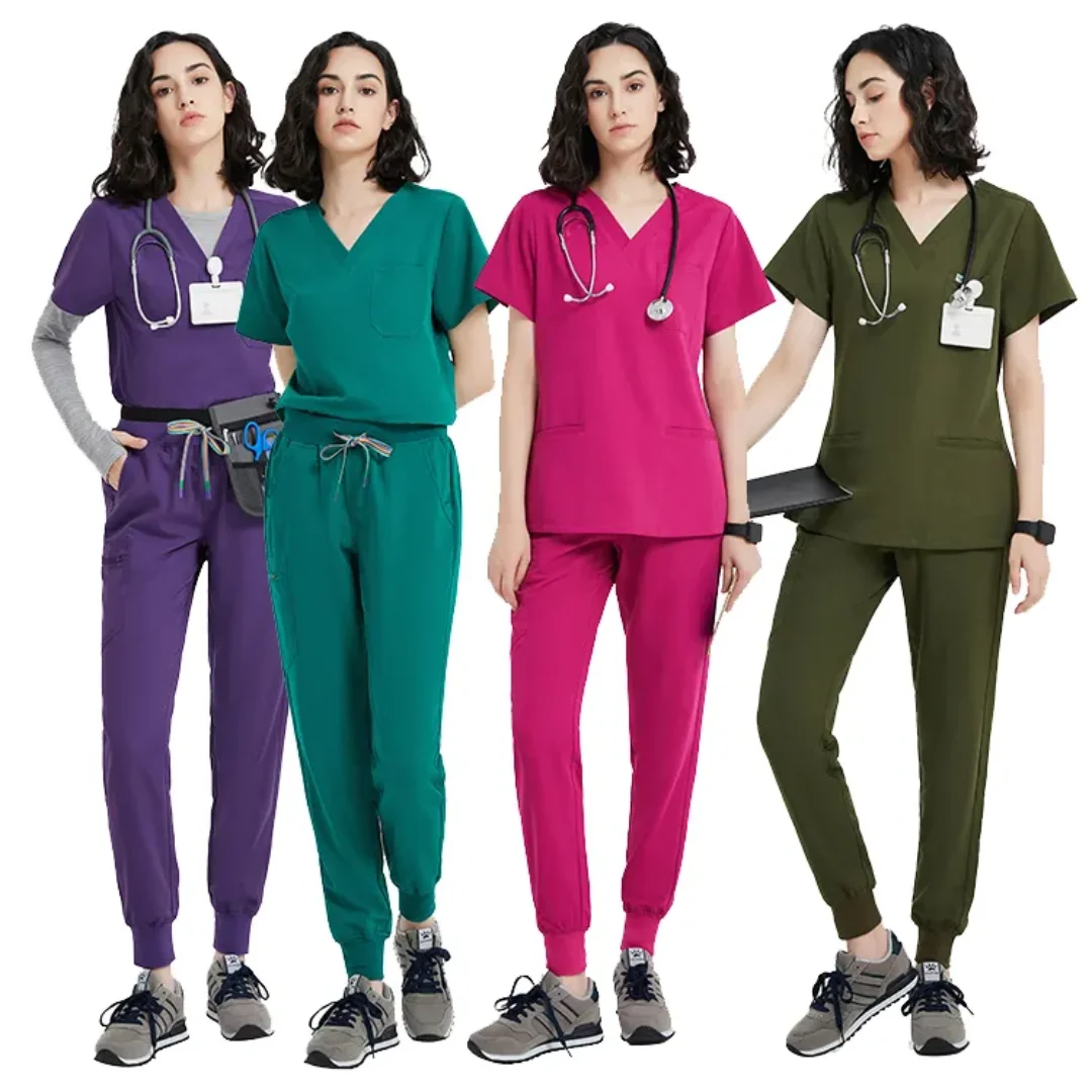 Custom Logo Women's Short Sleeve Nursing Scrubs V-Neck Nurse Uniforms Comfortable Rayon Spandex Print New Hospital Uniforms