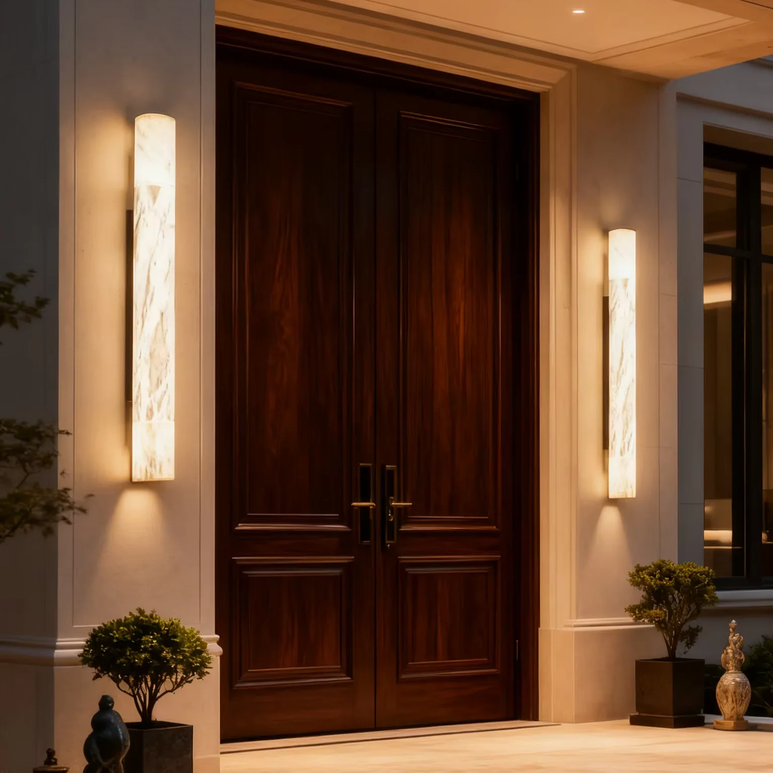 Copper Wall Sconce Lamp Background Natural Marble Indoor Wall Lamps for Home Hotel Bedroom