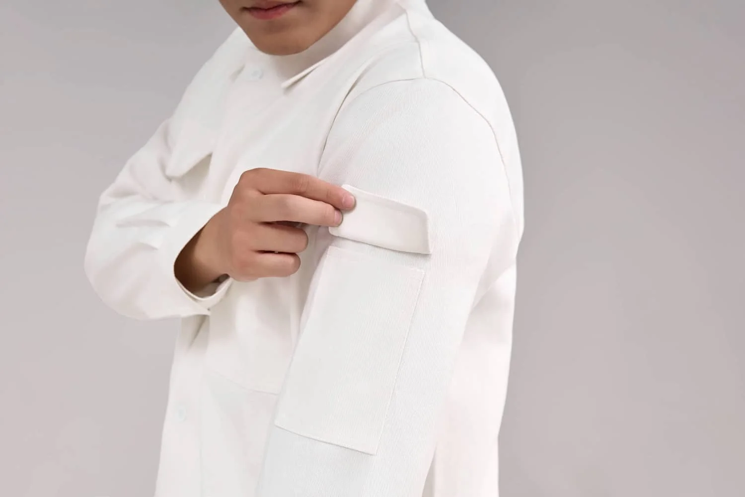 Professional Women's White Long-sleeved Crew Neck with Button-down Detailing, Suitable for Commuting and Formal Work Wear