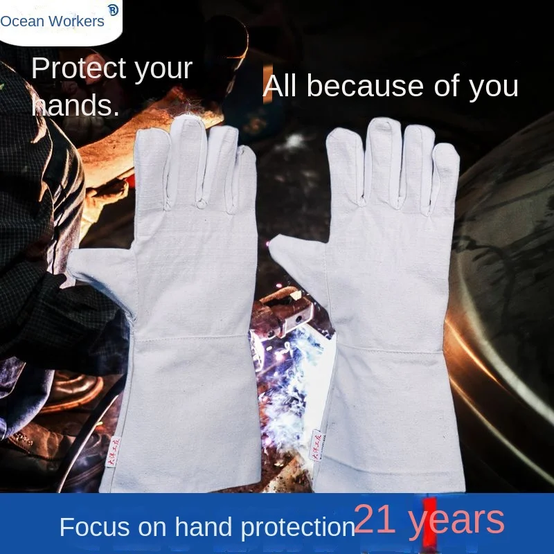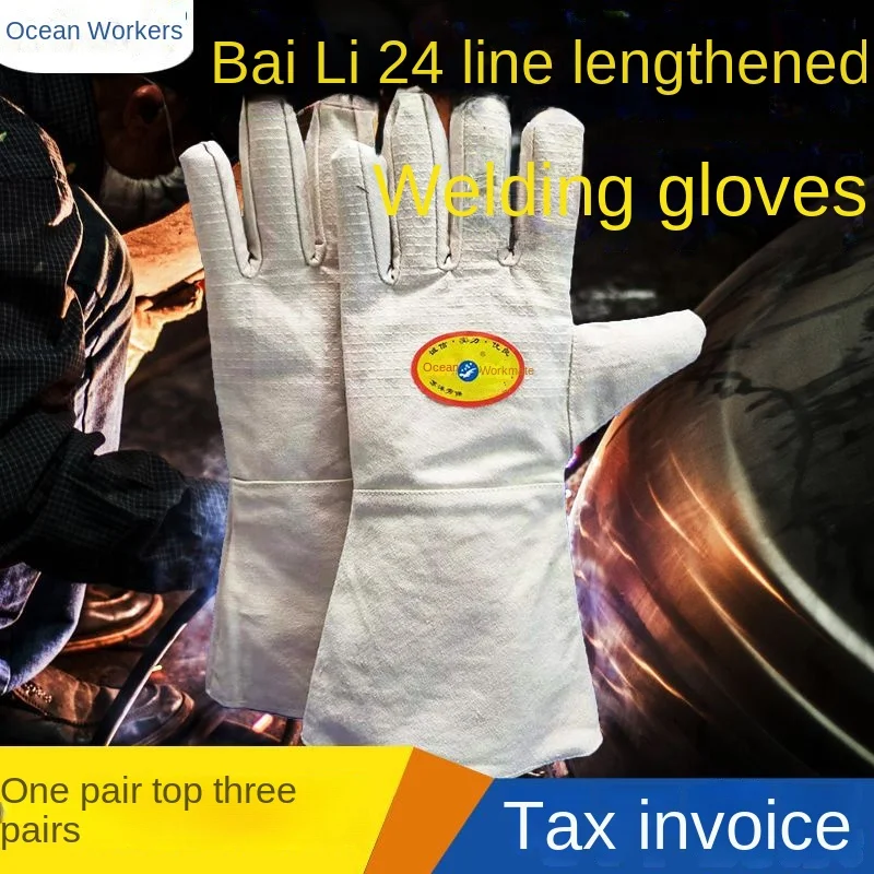White Armor 24-Wire Full-Lined Electric Welding Gloves Wear-Resistant Canvas Work Gloves for Labor Protection Safety Gloves