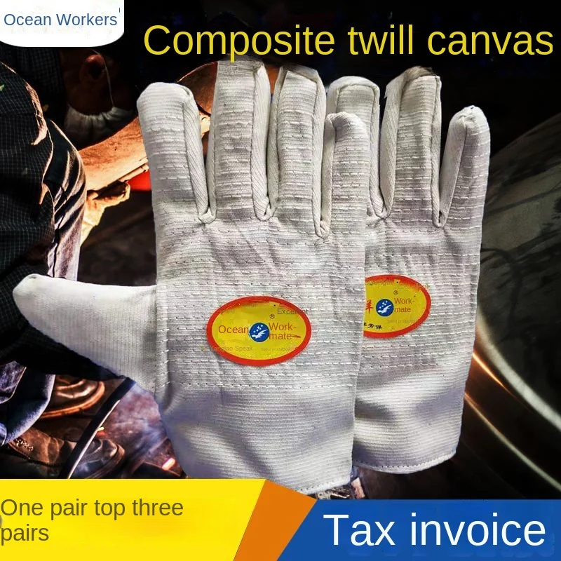 Wholesale 24-Line Double-Layer Twill Cotton Gloves Wear-Resistant Composite Canvas Safety Gloves