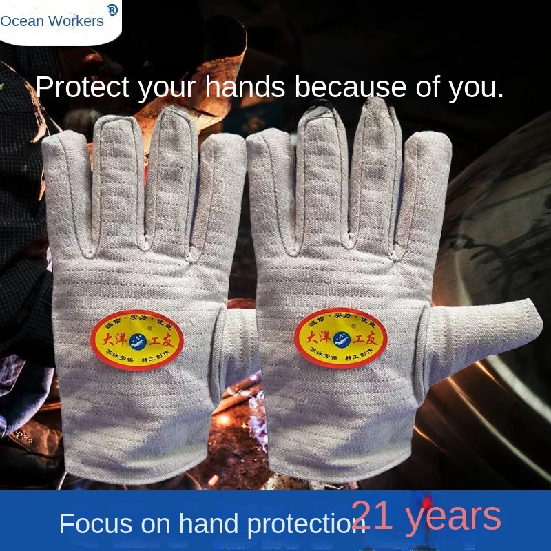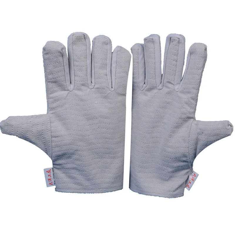 Wholesale White Embossed Cotton Auto Parts Safety Gloves Armour Labor Protection Welding Gloves Made of Canvas