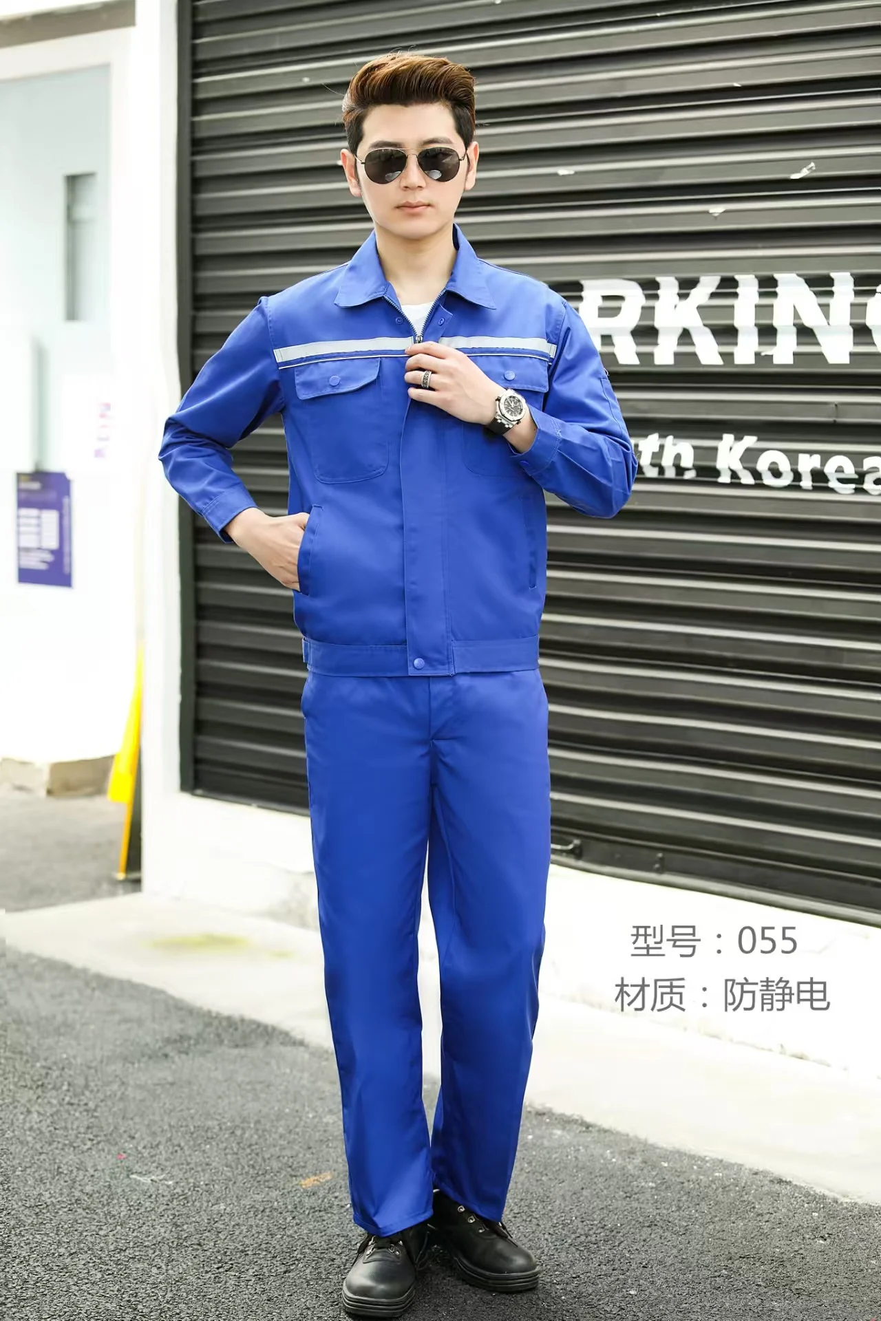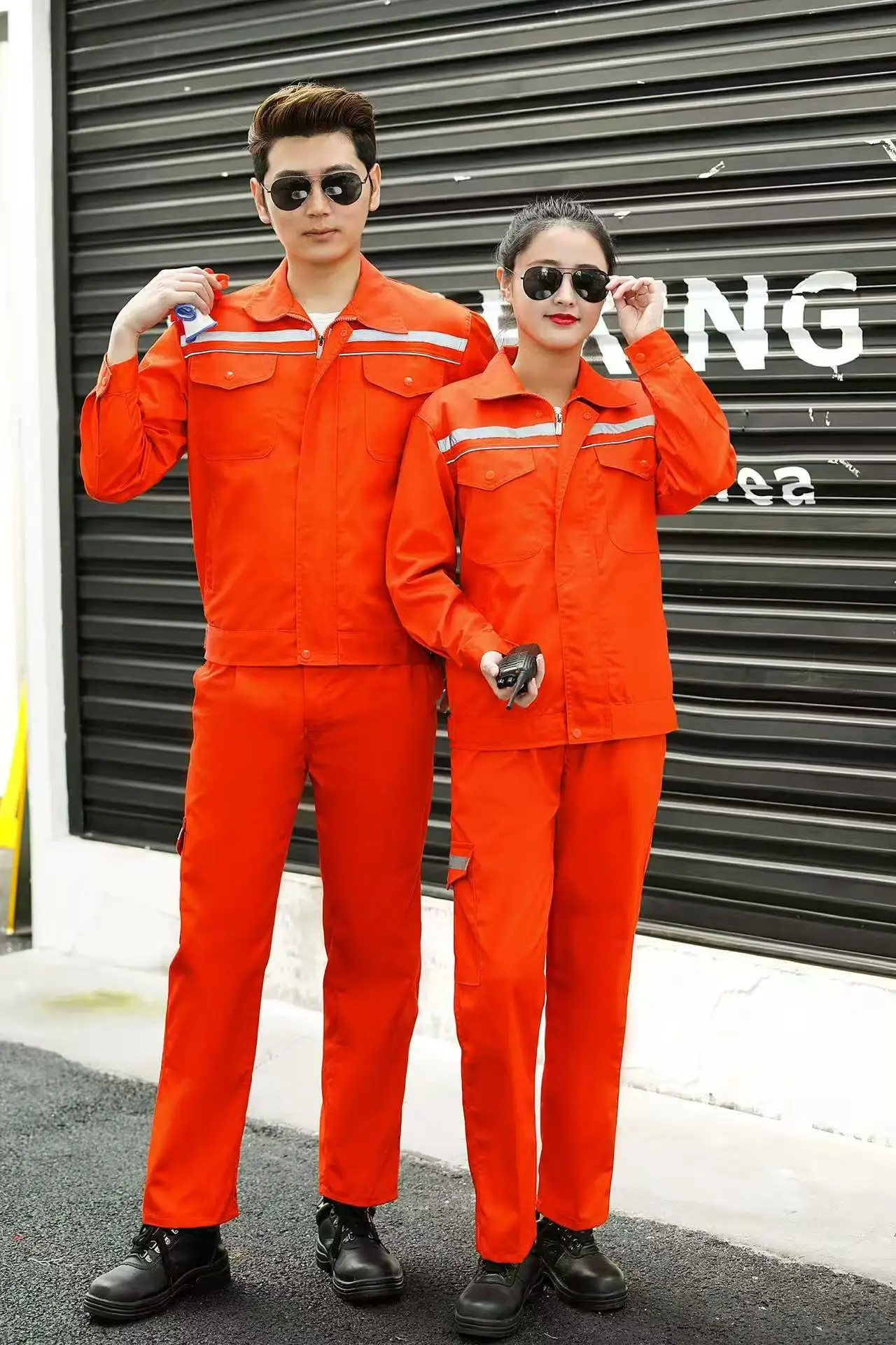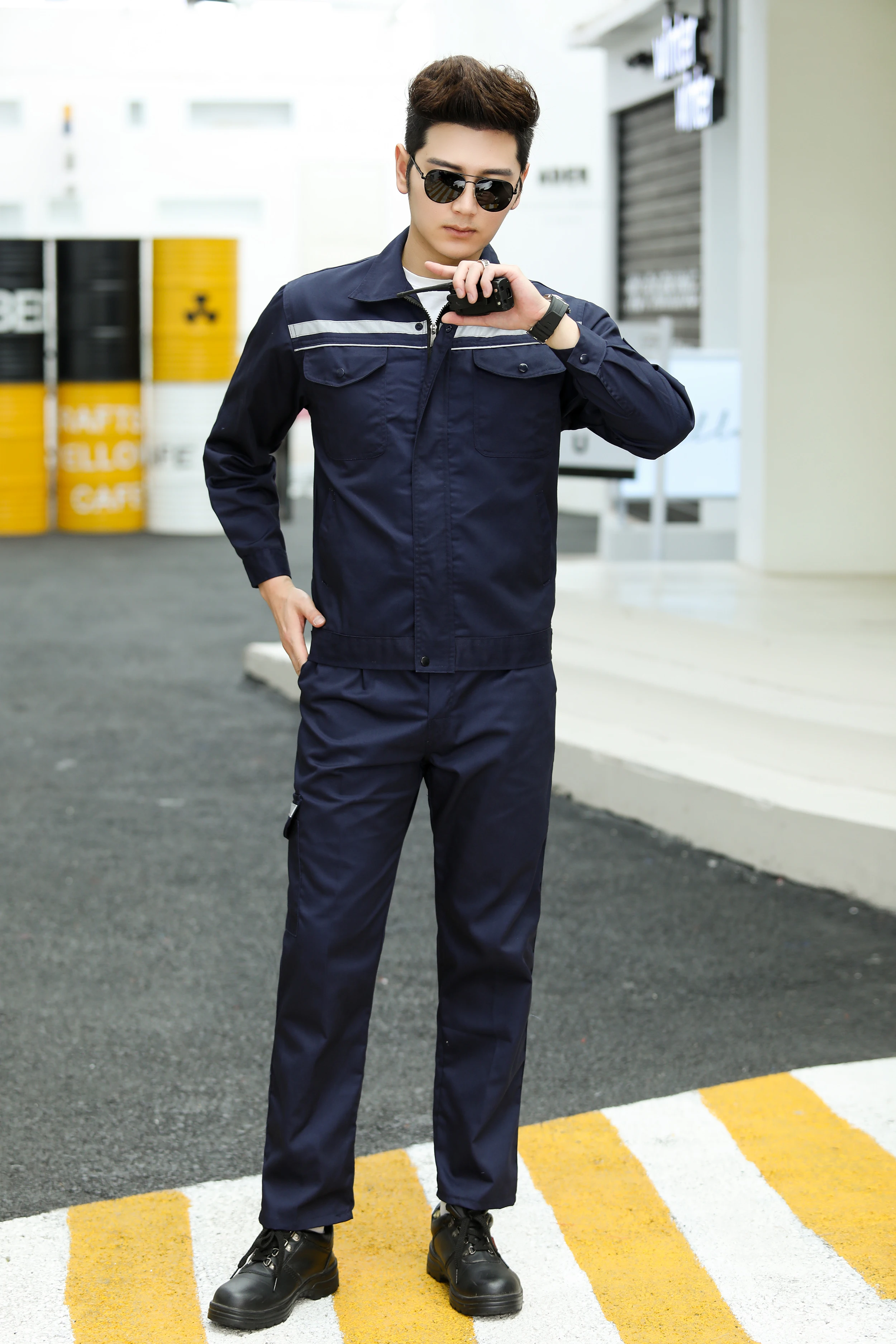 Durable Unisex Logistics Uniform Long Sleeve Auto Repair Mechanic Woven Cotton Hand Drawn Printing Breathable Workwear