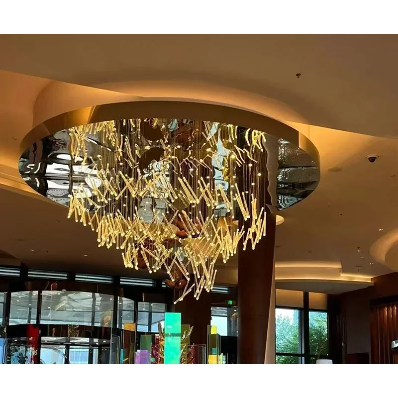 Wedding Hall Chandelier Hotel Hanging Pendant Light Customized Amber Crystal Chandelier Lighting for Lobby