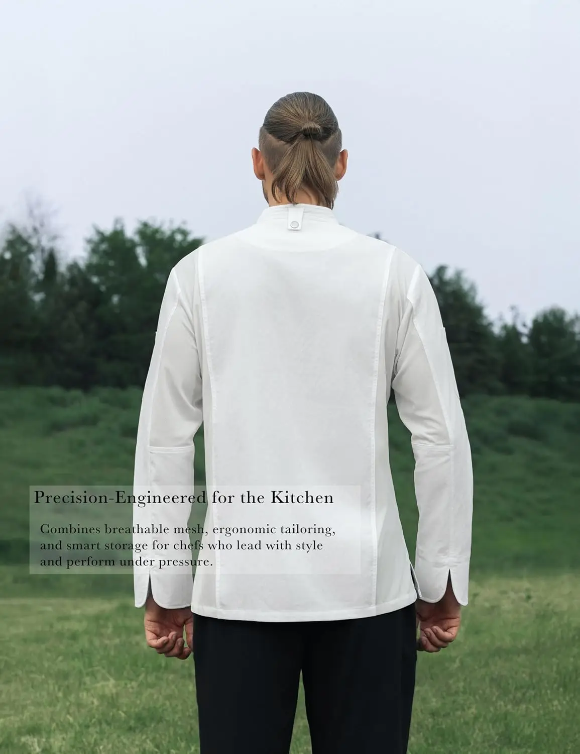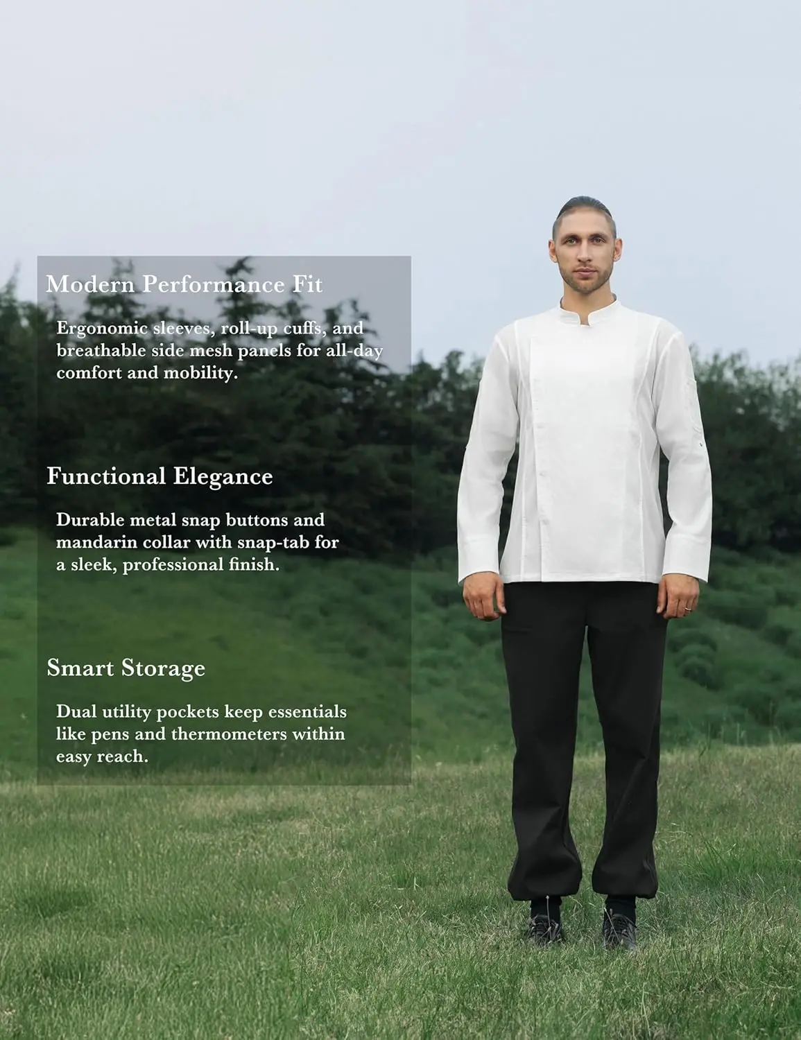 Sheenfon Orion Men's Chef Jacket-Modern Sporty Long Sleeve Silk Breathable Mesh Panels Embossed Utility Pockets