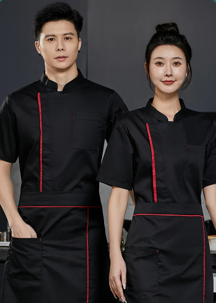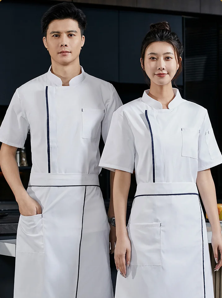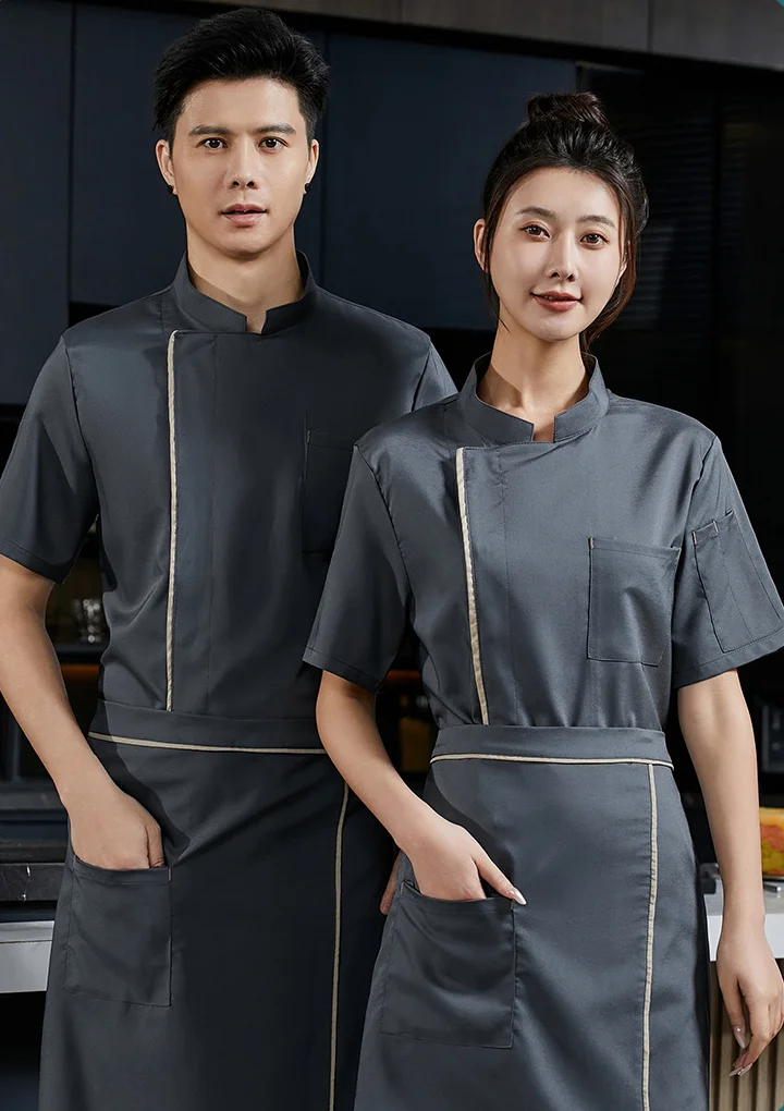 Hot Selling Polyester Catering Kitchen Snap-fastener Chef Jacket Short Sleeve Shirts for Work in Restaurant Uniform