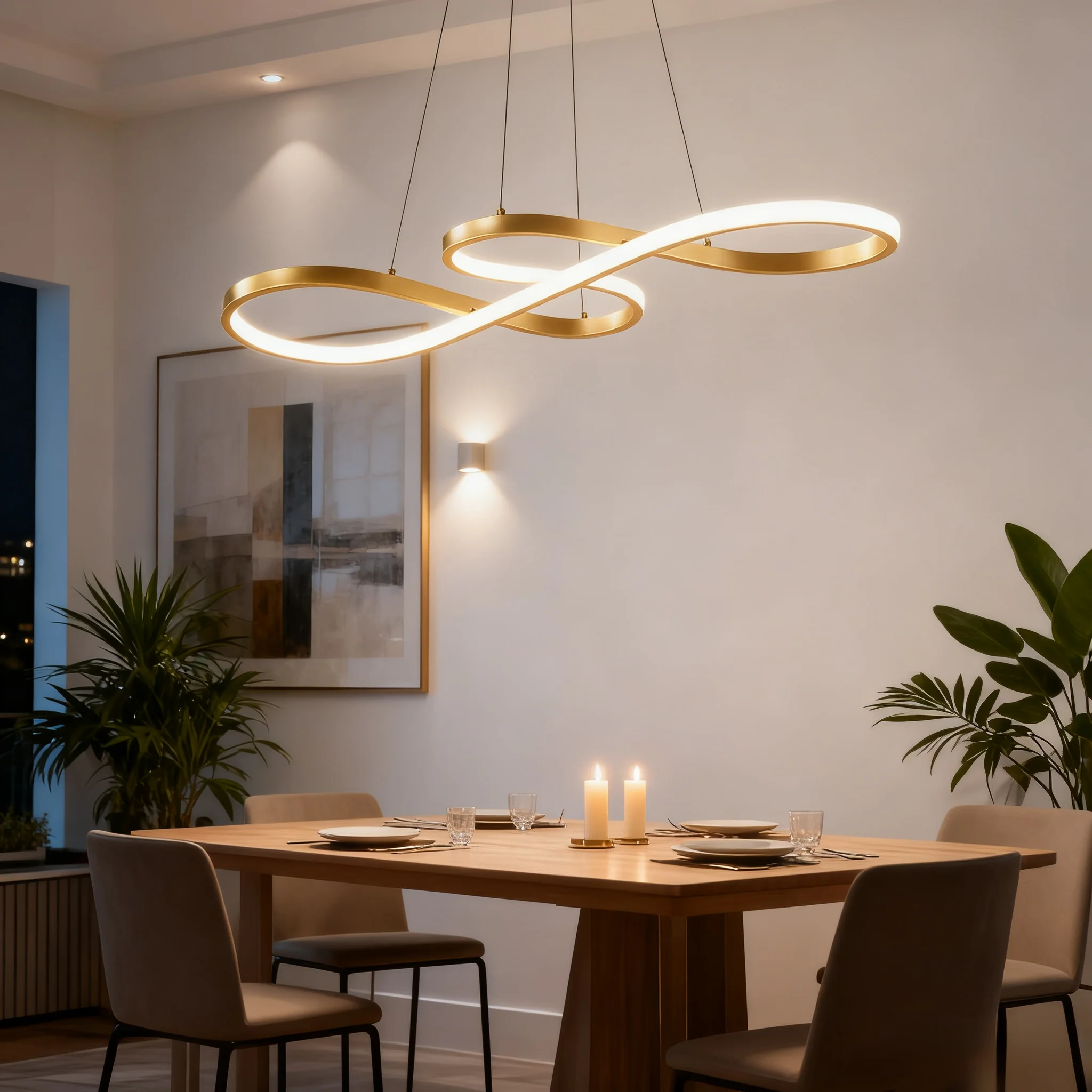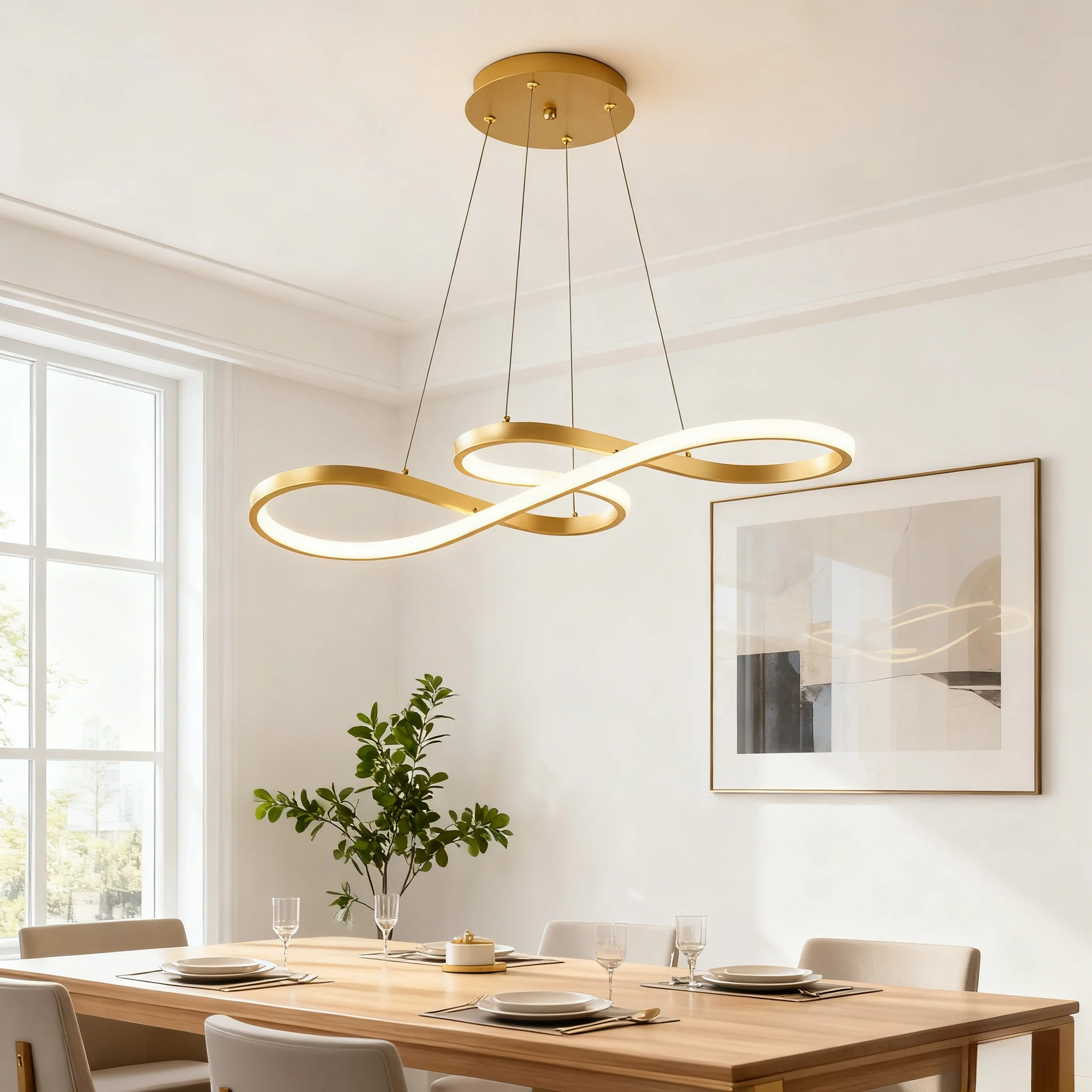 JACKSUN Modern Gold LED Acrylic Chandelier for Kitchen Island Lighting Dimmable Unique Linear Design Pendant Light Over Table