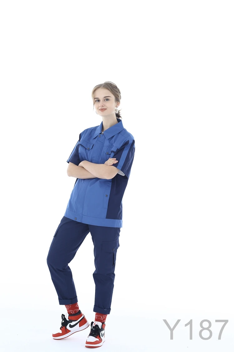 Unisex Anti-Static Breathable Cotton Workwear Jacket Pants Coveralls for Repairman Auto Mechanics Workshop Protective Clothing