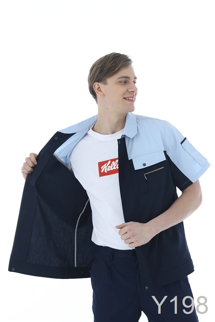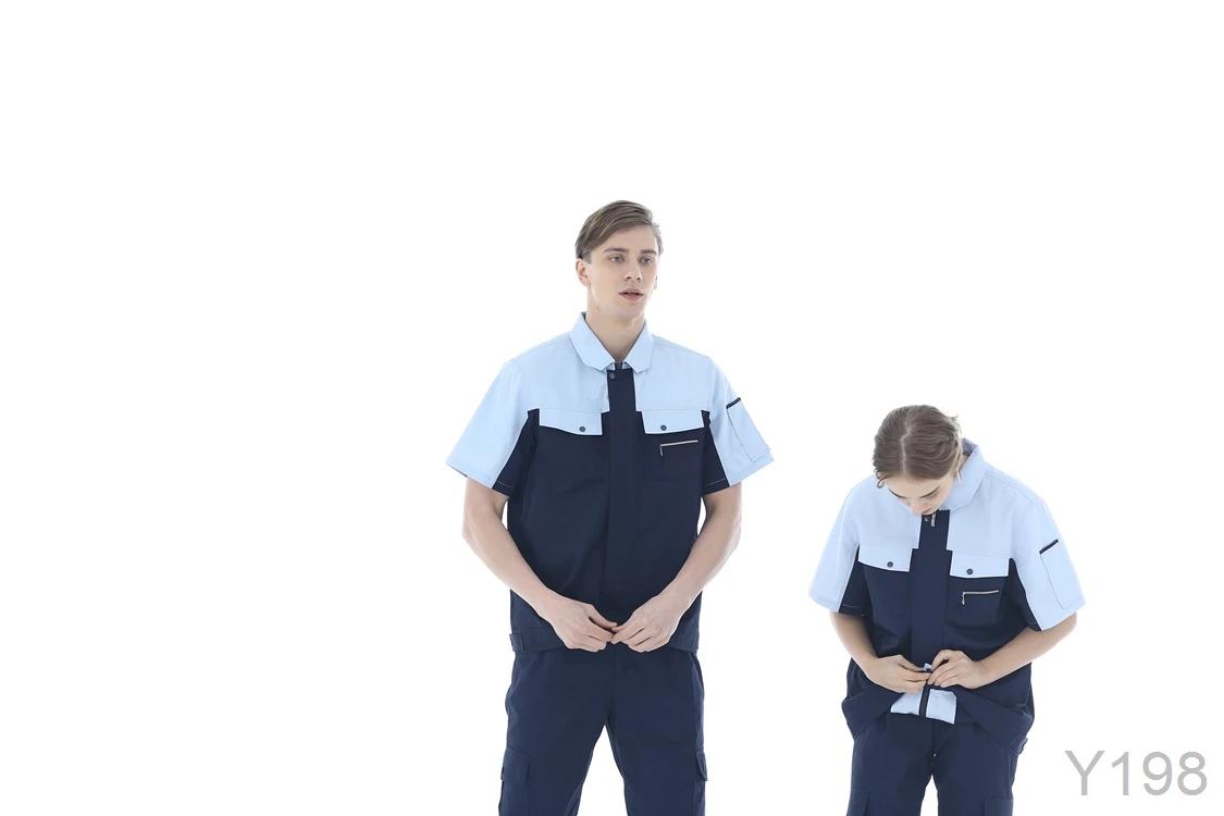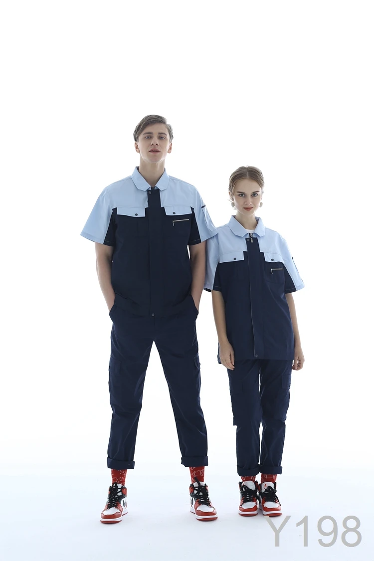 Breathable Anti-Static Flame-Retardant Cotton Poplin Auto Mechanic Short Sleeve Work Shirt and Pant Uniform