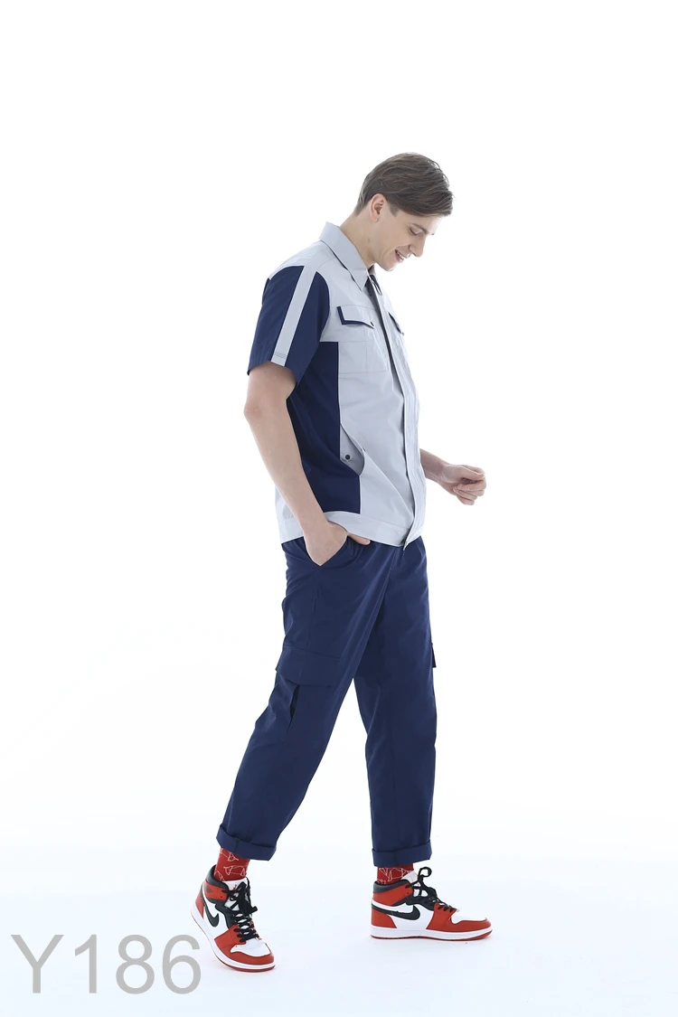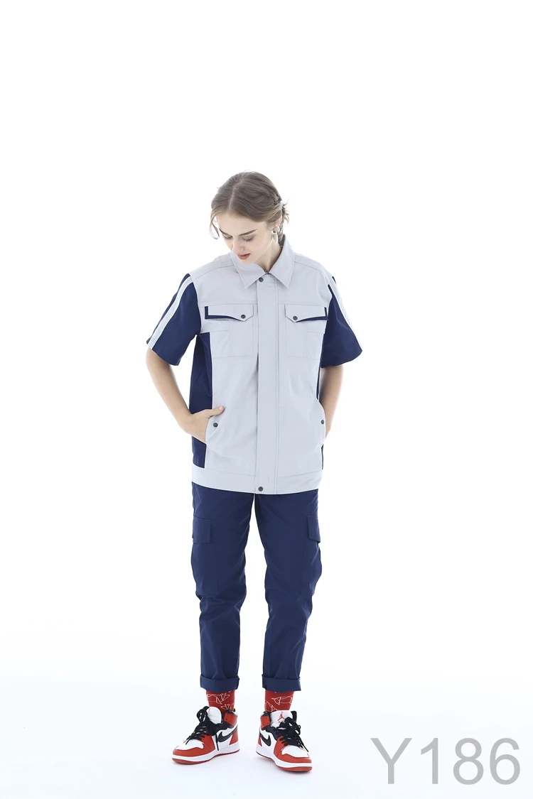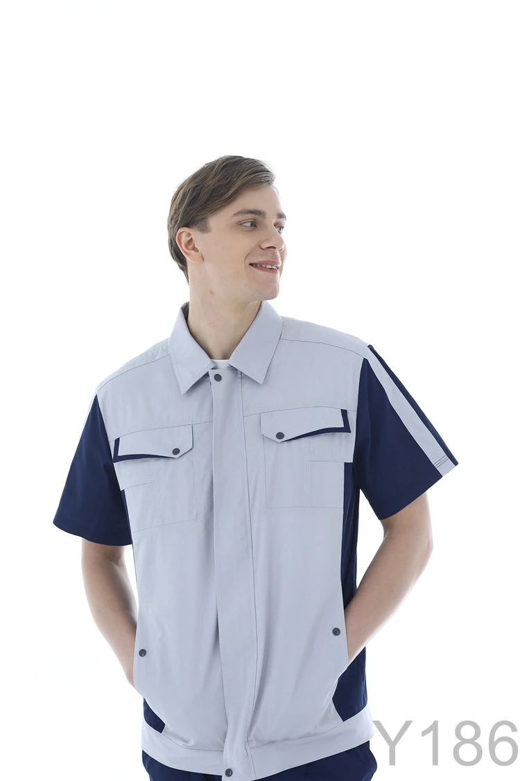 Summer Thin Cotton Anti-Static Breathable Waterproof Work Clothing Sets Short Sleeve Shirt+Pants Professional Engineer Workwear