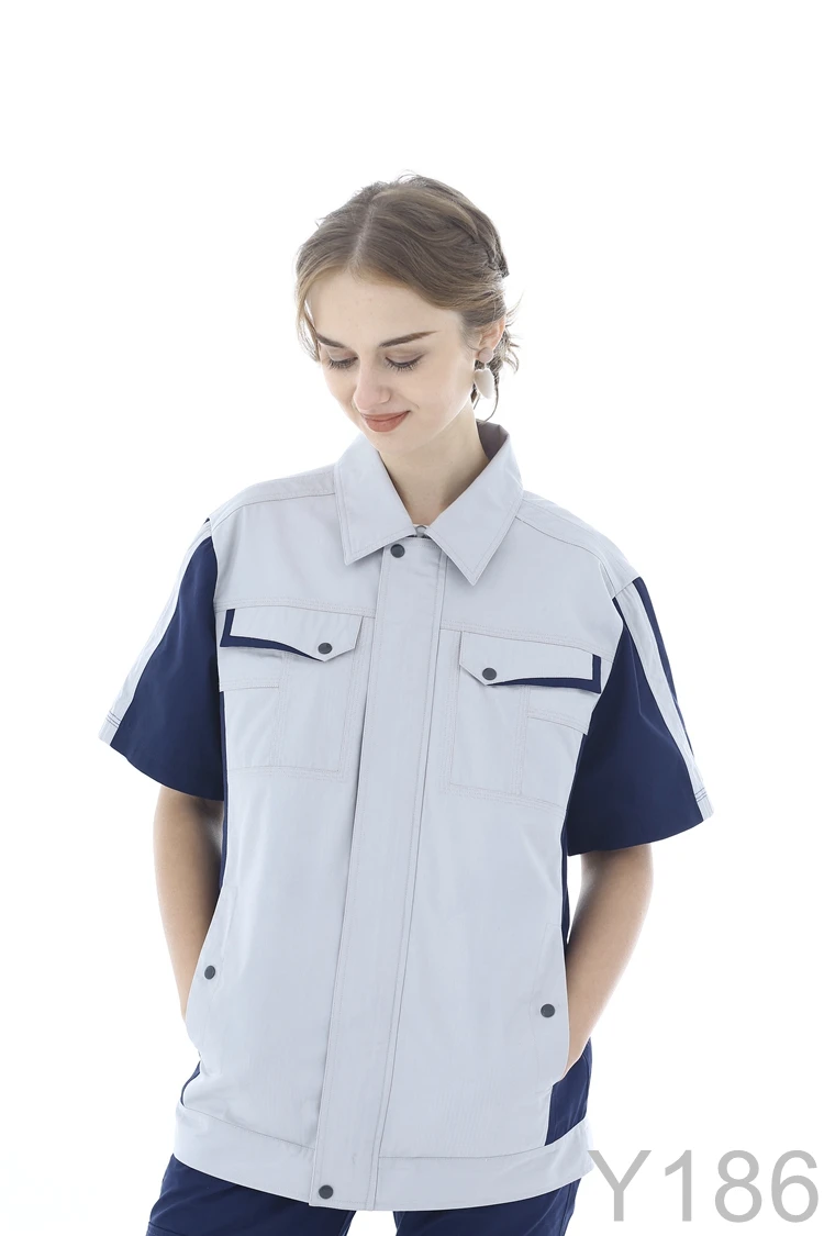 New Fashion Stylish Waterproof Anti-Static Breathable Short Sleeve Unisex Work Uniforms for Factory Logistics Garage