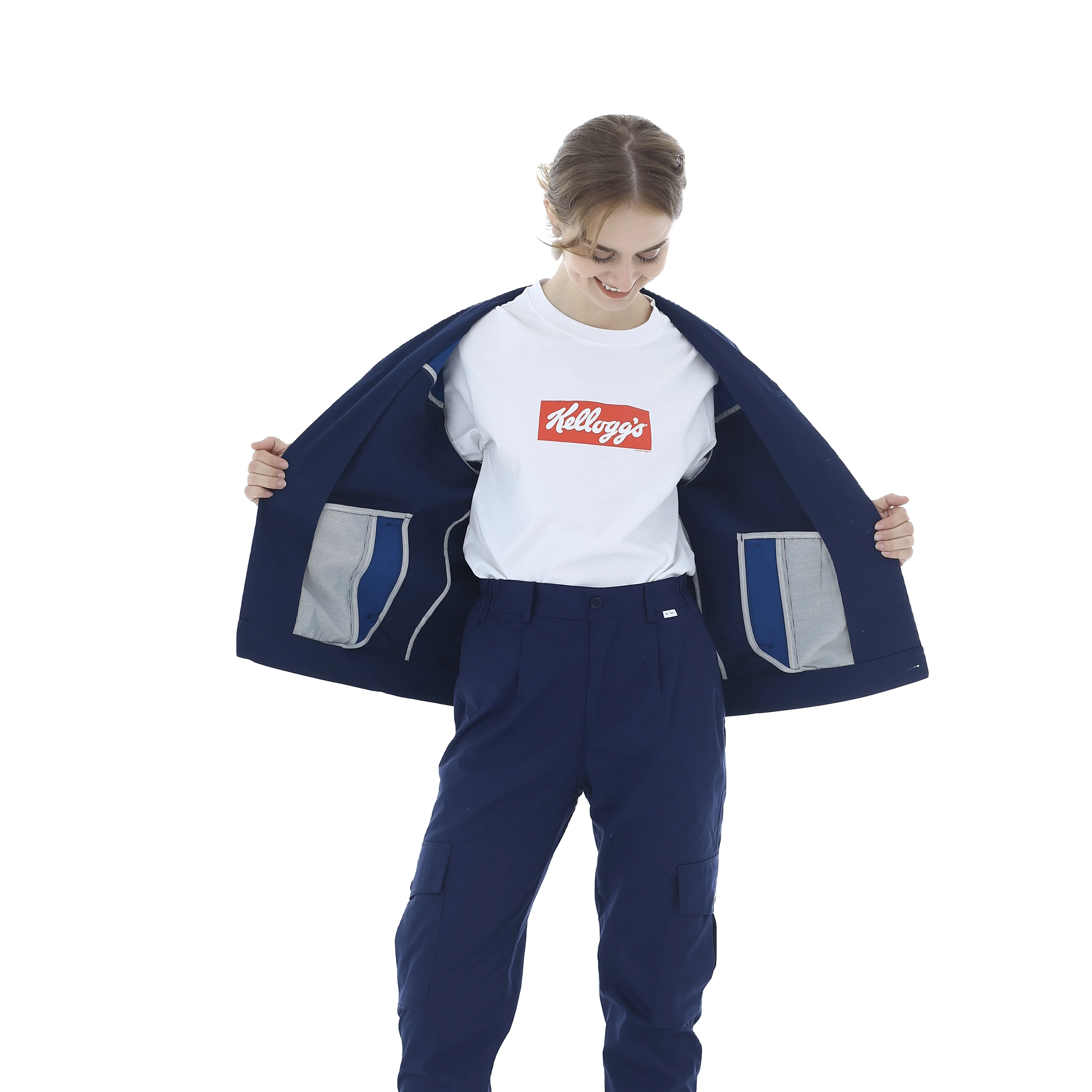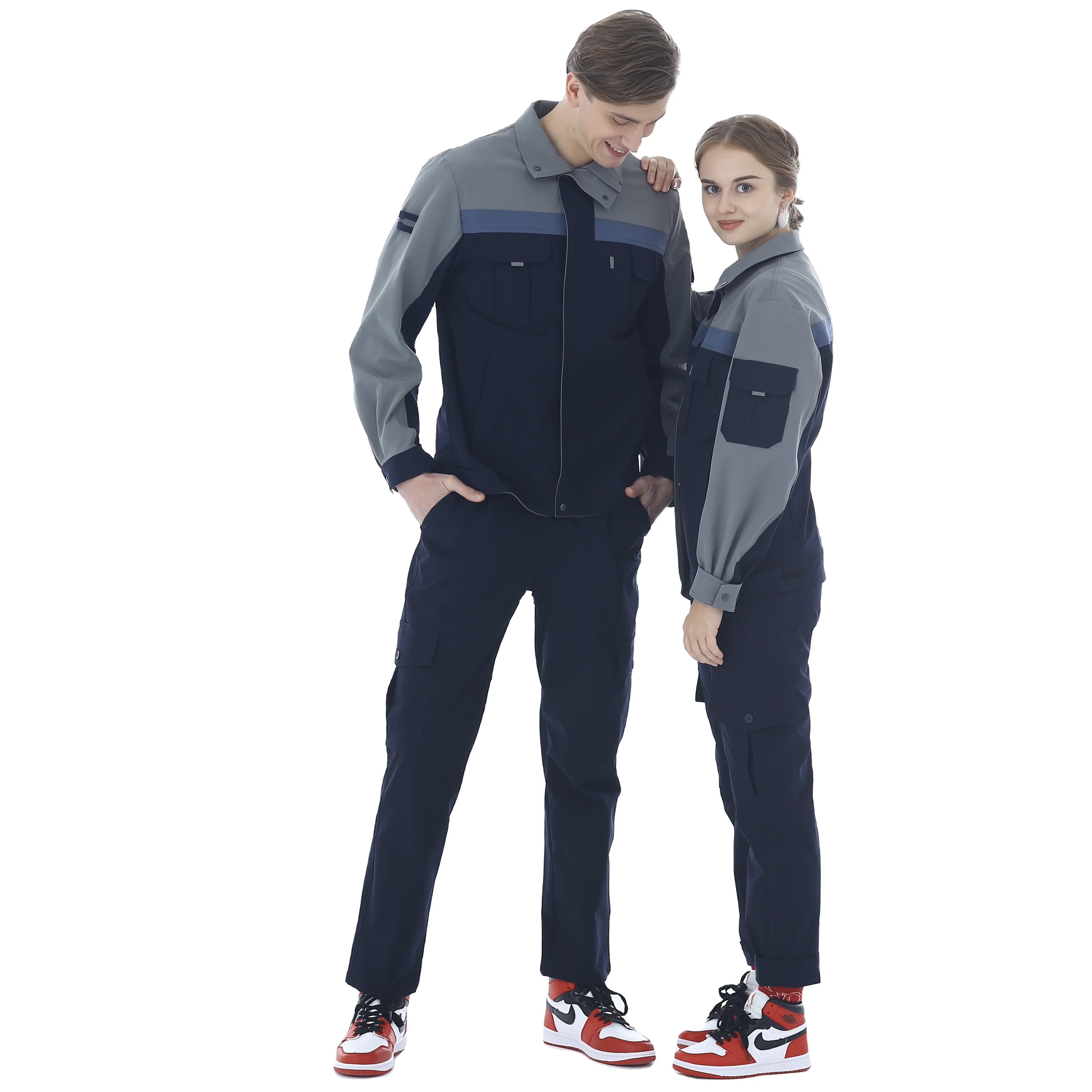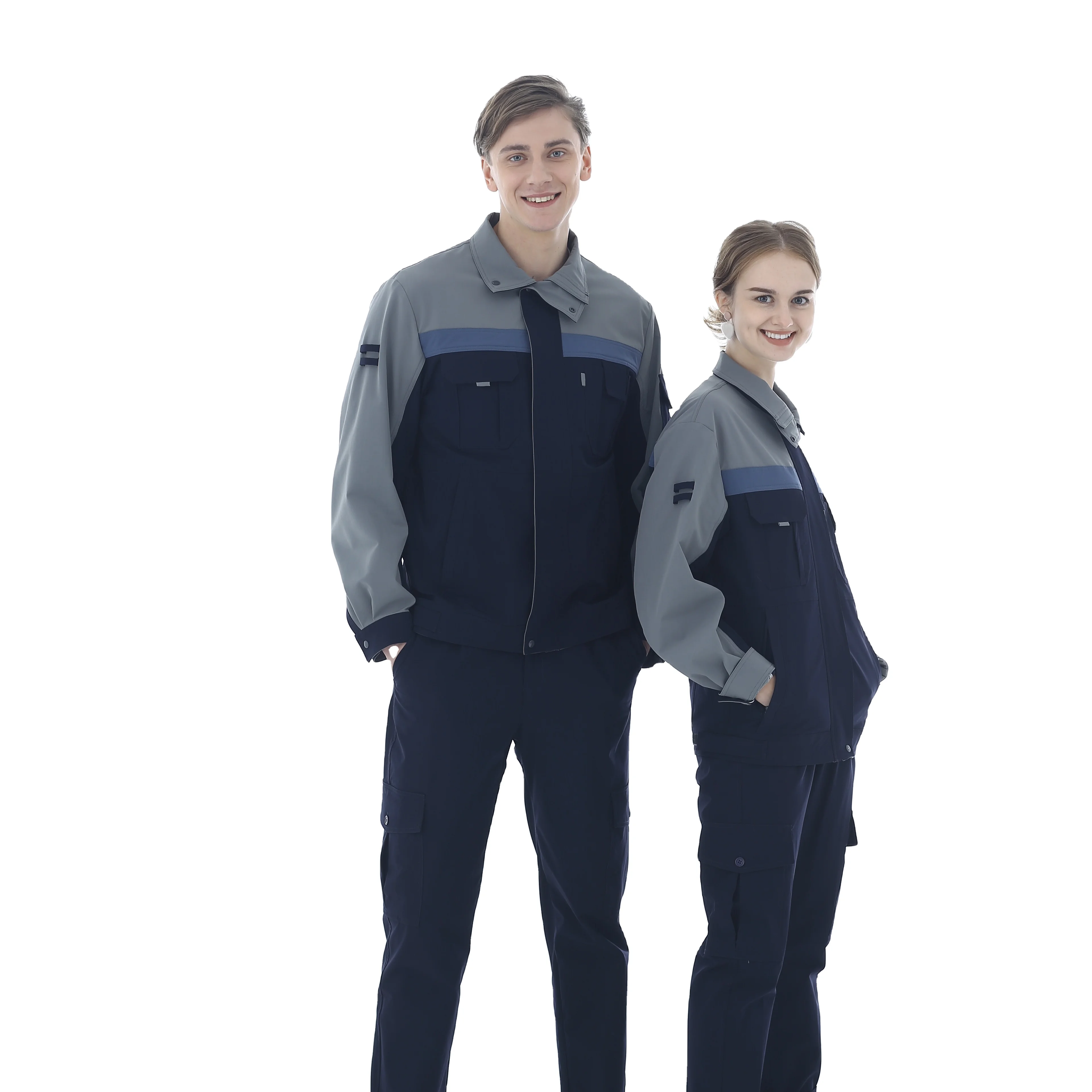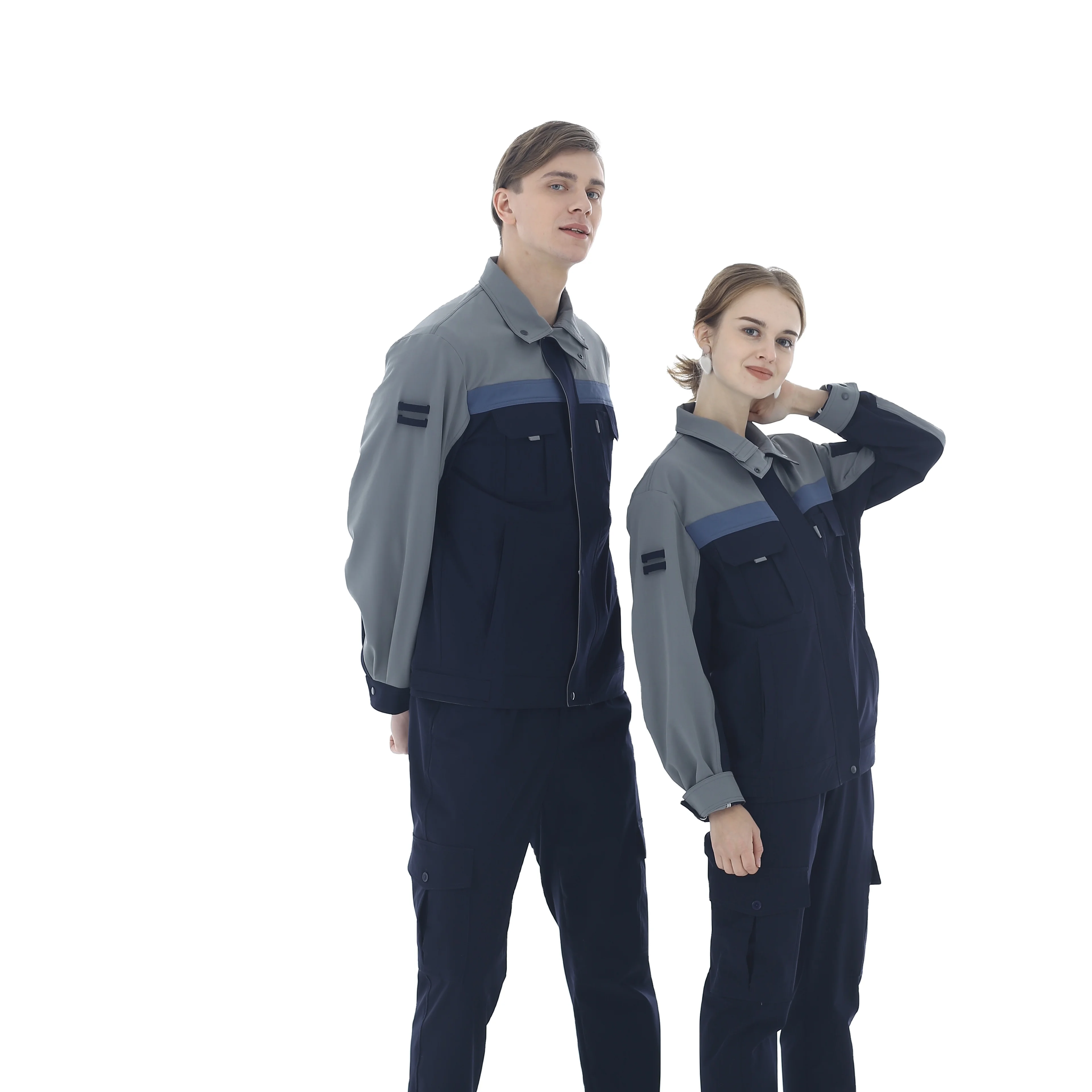 Long Sleeved Blue Navy Blue Spandex Fabric Safety Protection Wholesale Labor Protection Work Suit Set Unisex Four Seasons OEM