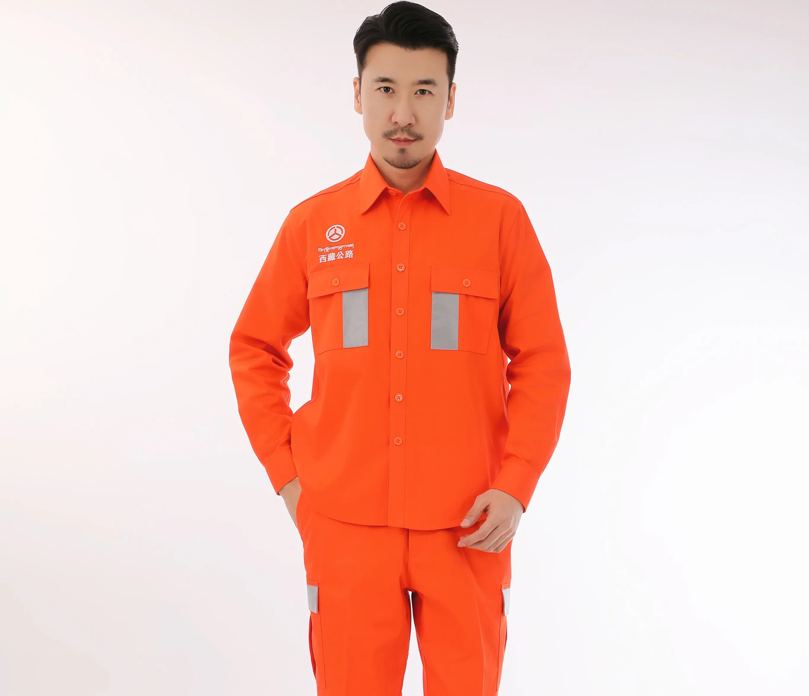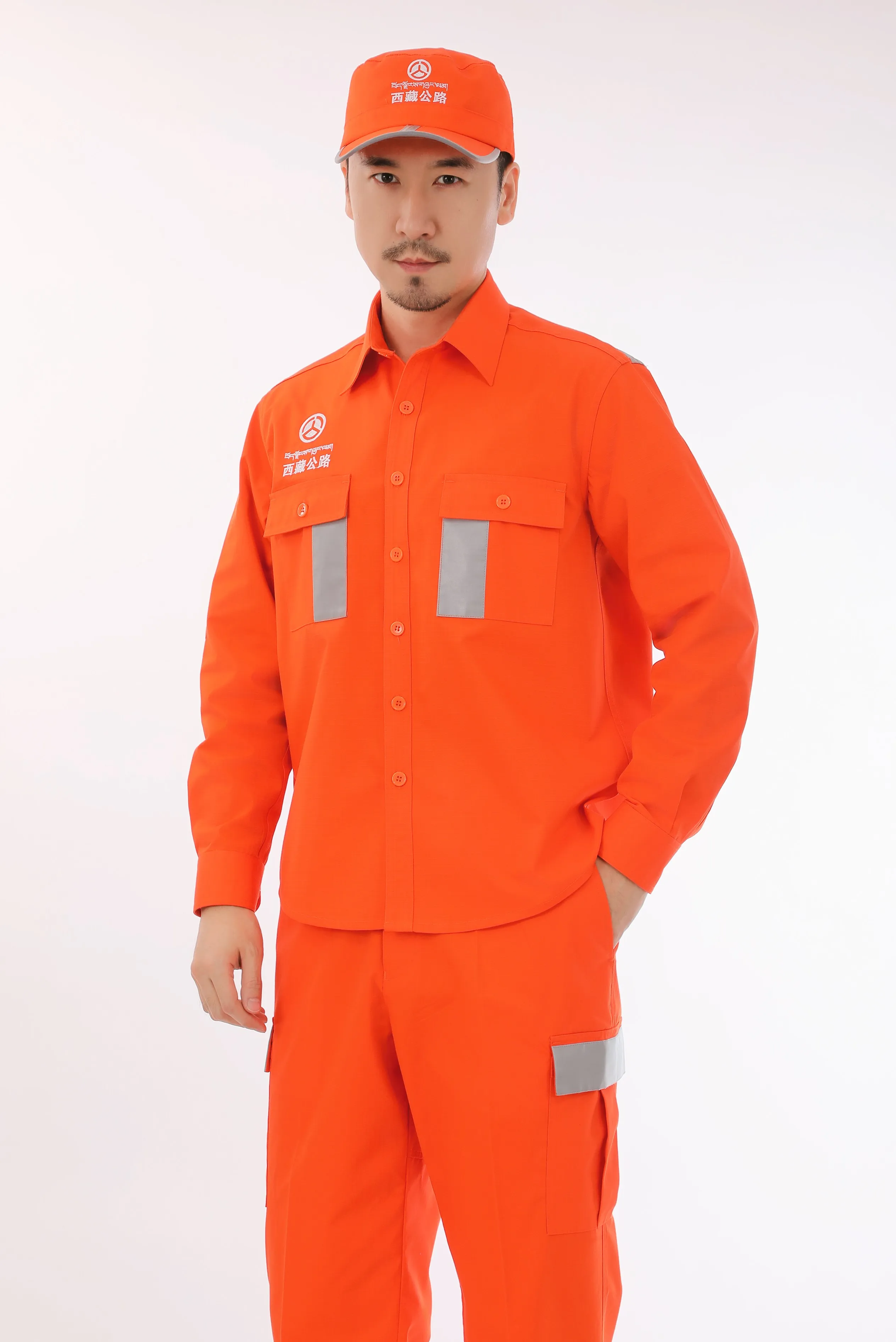 TC Fabric Custom Identification Reflective Strip Orange Safety Overall Factory Work Clothes