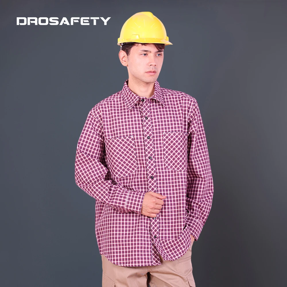 Streetwear Engineers Fire Resistant Mens Long Sleeves Shirts Work Safety Work Wear Checkered Shirts