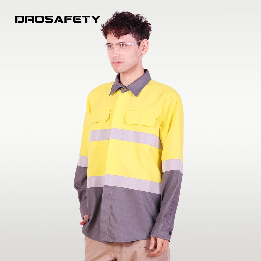 Fashion Industrial Flame Retardant NFPA 2112 Work Clothes Construction Safety Long Sleeved Shirt