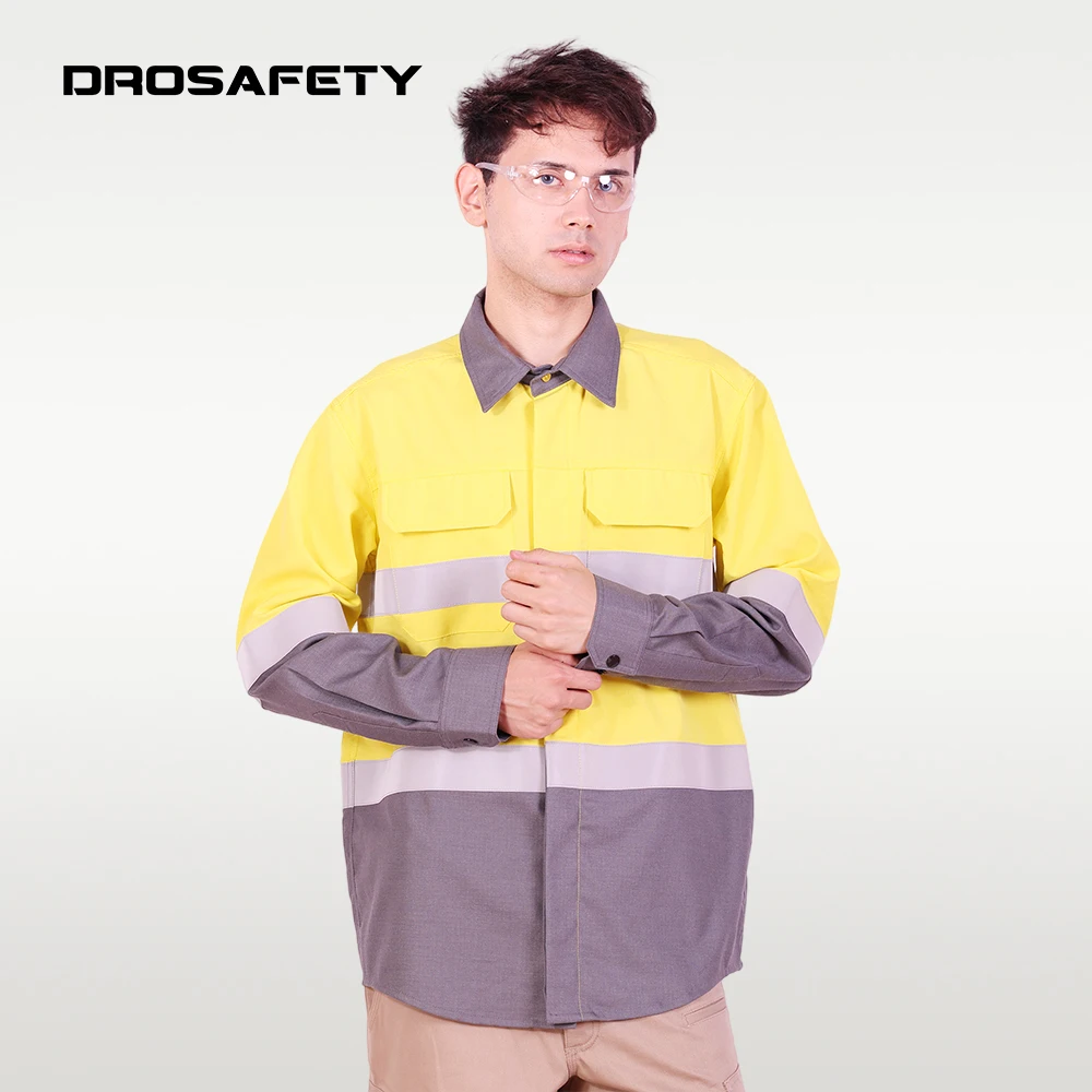 Construction Wholesale 100% Cotton Patchwork Color Fire Resistant Work Clothes HRC 2 Safety Shirt