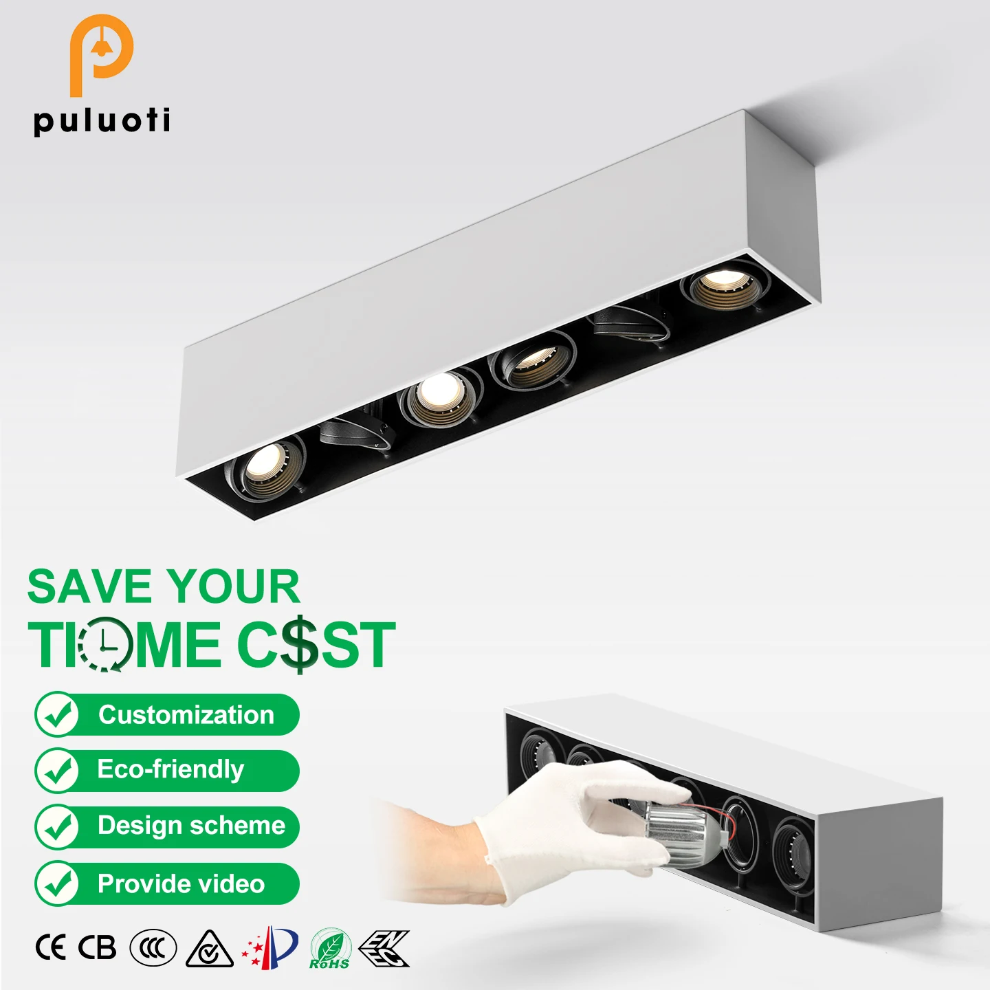 PULUOTI Indoor White Aluminium Surface Mounted Downlight for Living Room Replaceable Bulb MR16/GU10 Ceiling Spot Lamp Housing