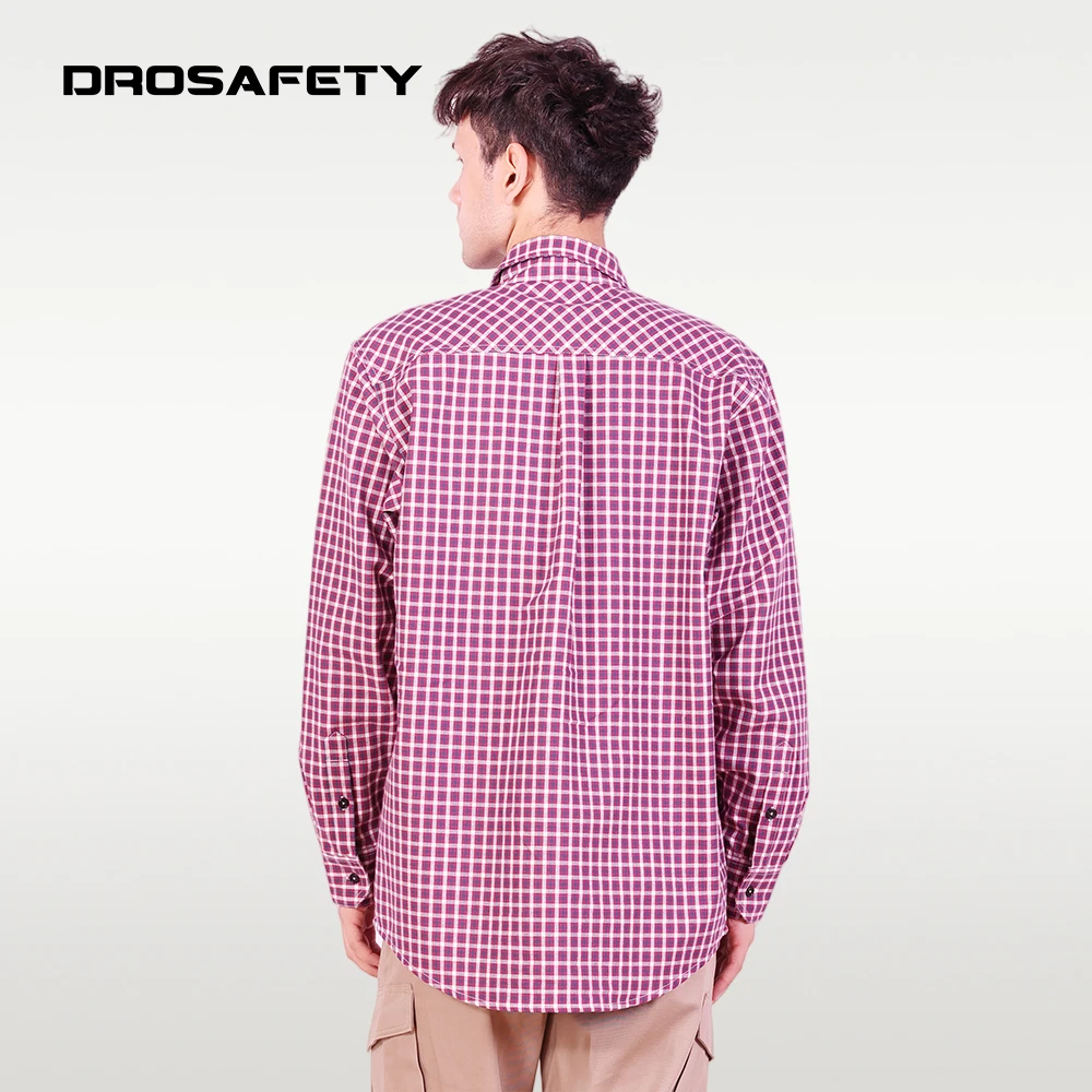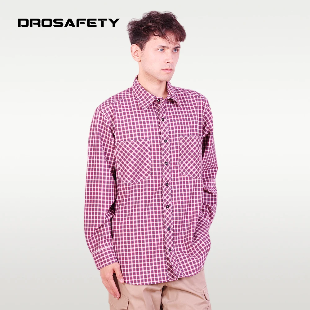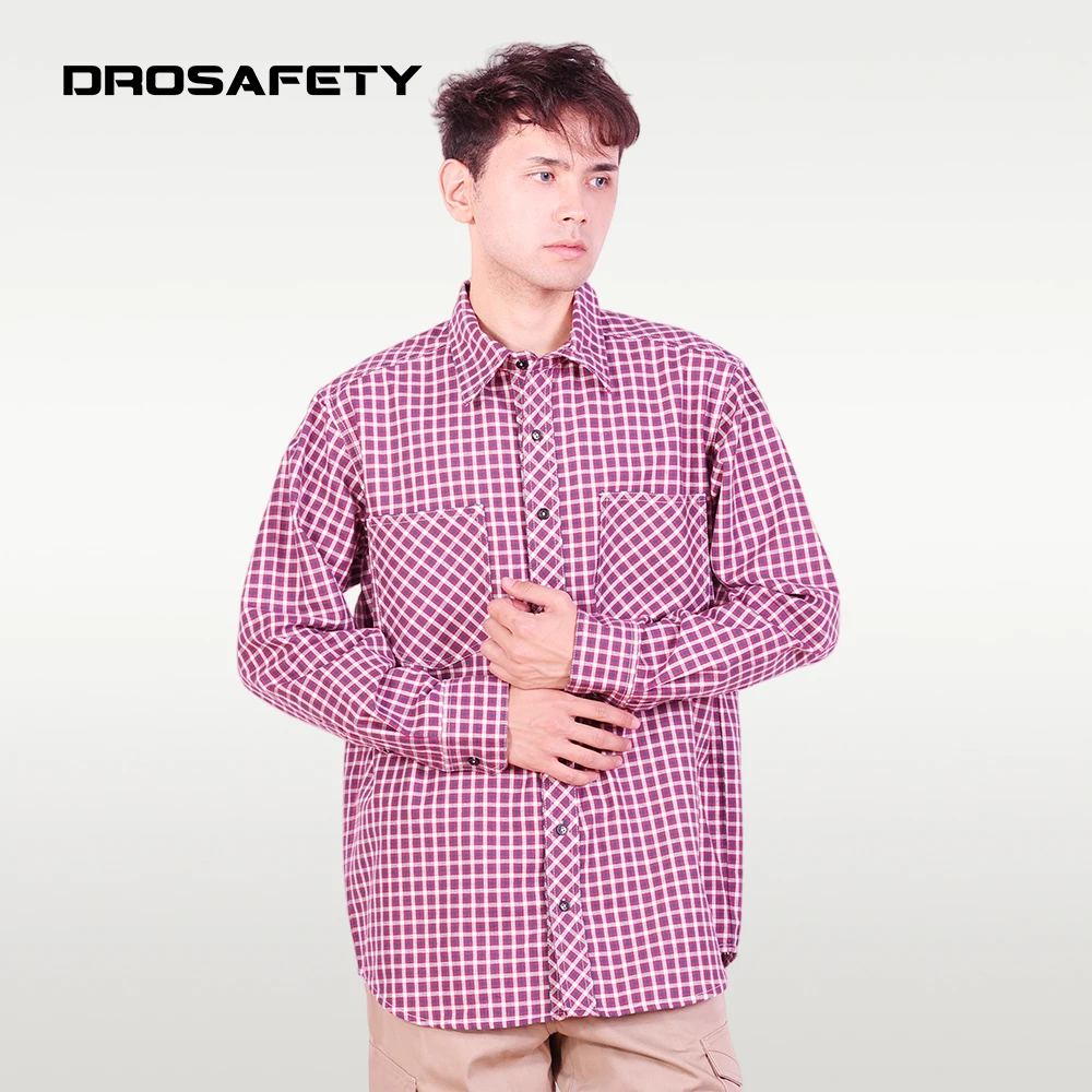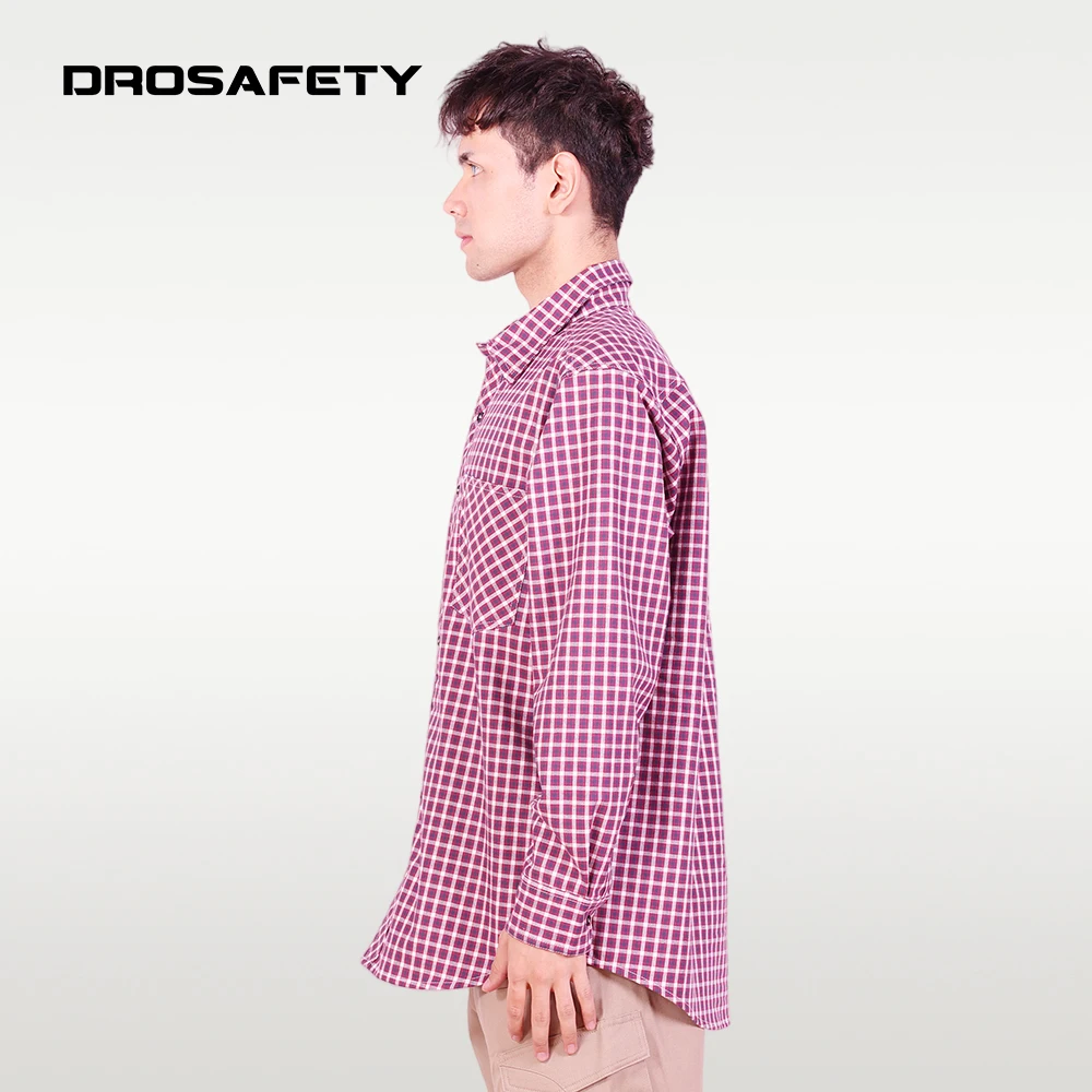 Comfortable Technician HRC 2 Fire Resistant Work Long Sleeves Checkered Shirts for Men
