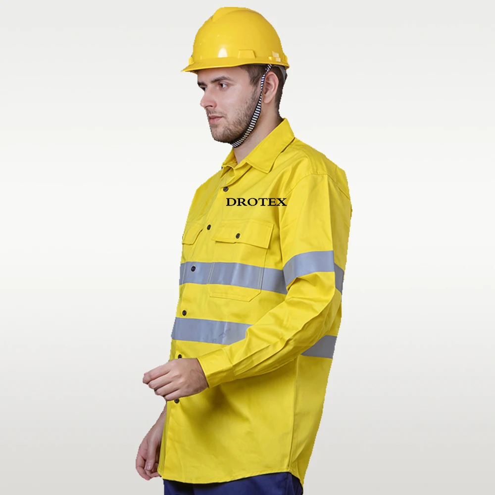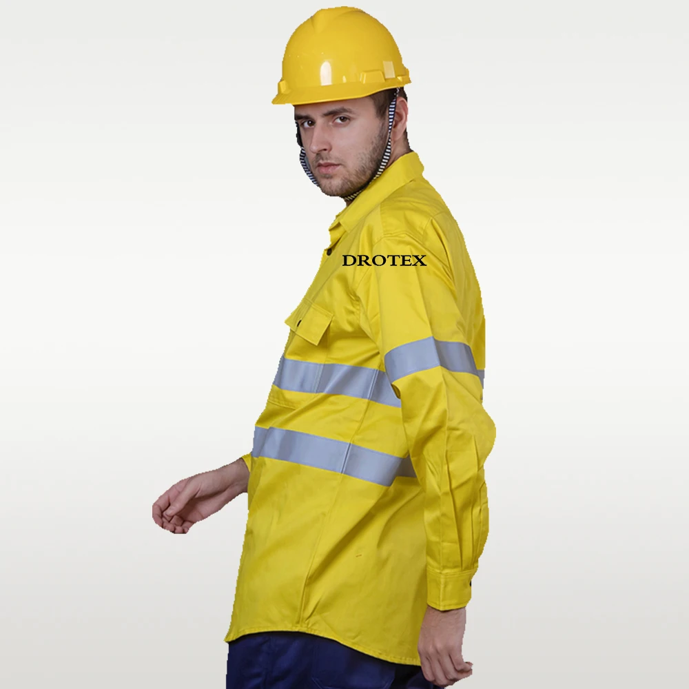 Chemical Fire Resistant Electrician Cotton Polyester Hivis Reflective Fire Safety Wear Workwear Shirt