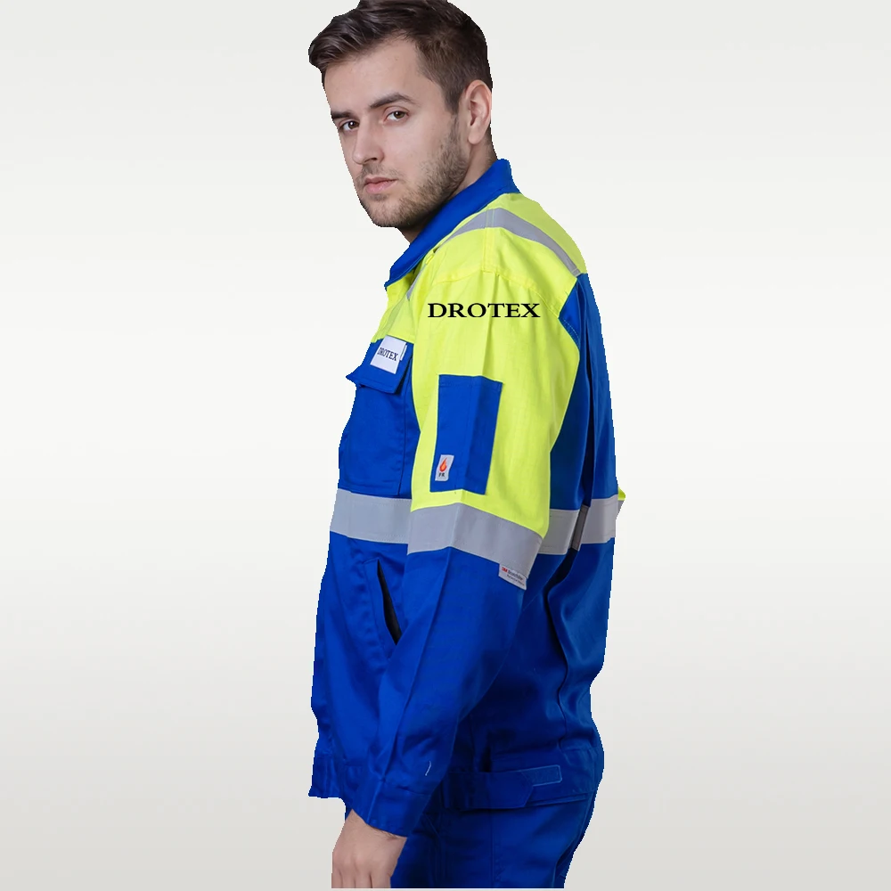 Customized Mining Industrial Work Clothes Anti Static Reflective Hi Vis Aramid Fire Resistant Work Jacket