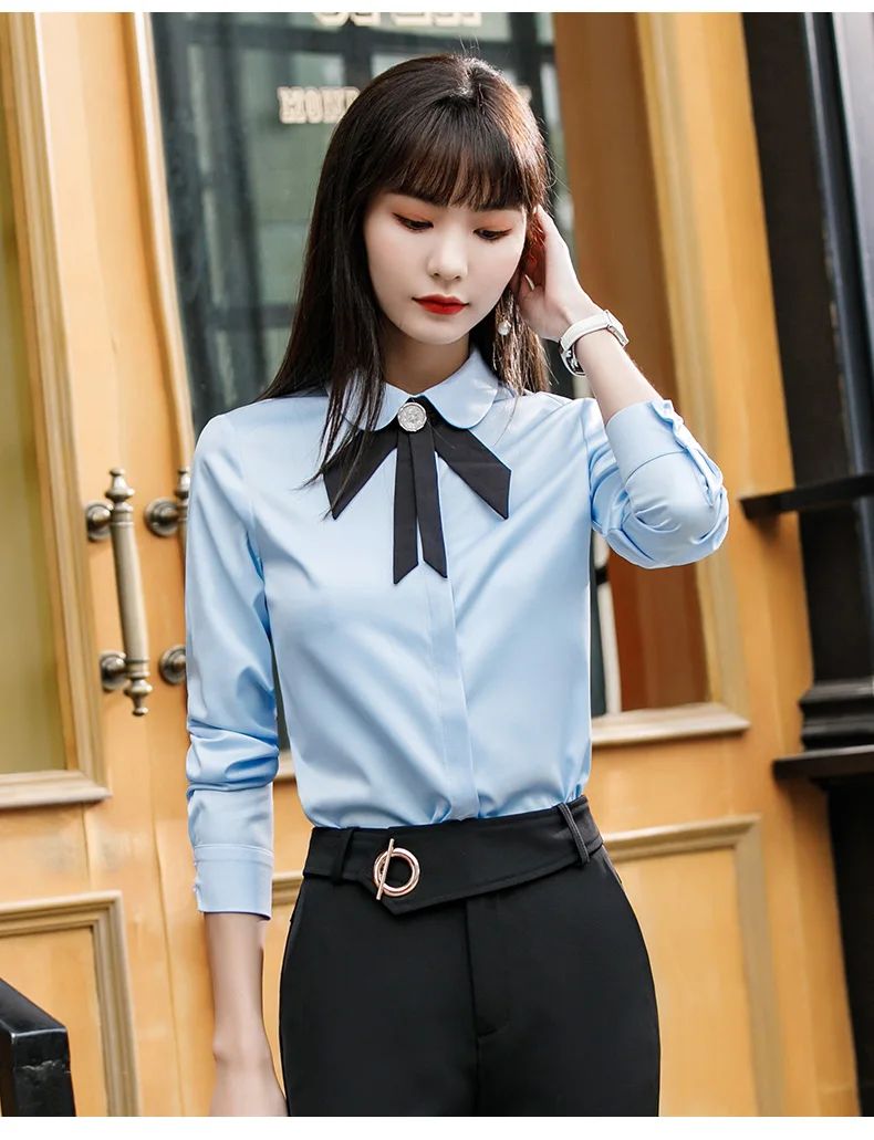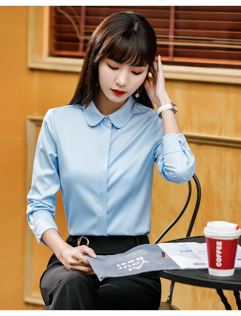 High Quality Women's Button Down Blouse Solid Pattern Front Logo for Office Wear-Wholesale