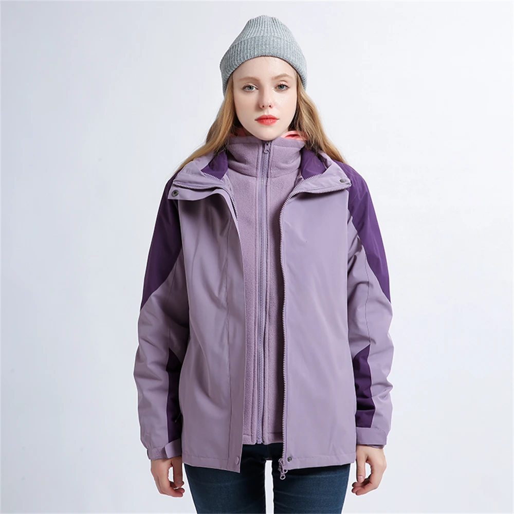 2026 Warm Fleece 3-in-1 Women's Outdoor Jacket Customizable Logo Breathable Winter Coat with Comfortable Stand Collar