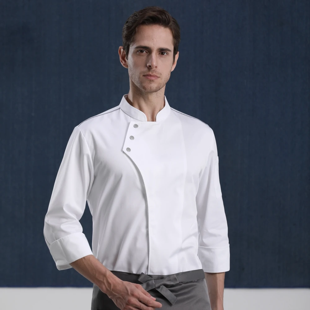 2026 High Quality Long Sleeve Chef Jacket Customizable Logo Work Shirt for Restaurant & Bar Uniforms