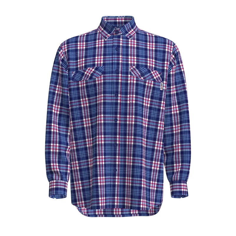 Wholesale UL Certificated Printing Plaid Fire Resistant Suit Mechanic Workwear Welding Shirts and Pants Industrial Work Suits