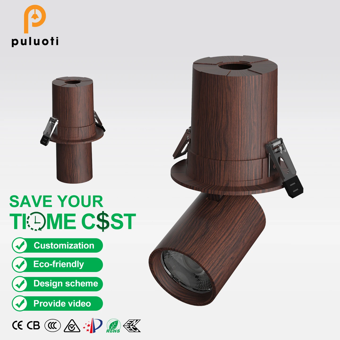 75mm Adjustable Angle 12W COB LED Recessed Down Light Spot Lights Modern Walnut Aluminum Hotels Offices Residential Warm 3500K