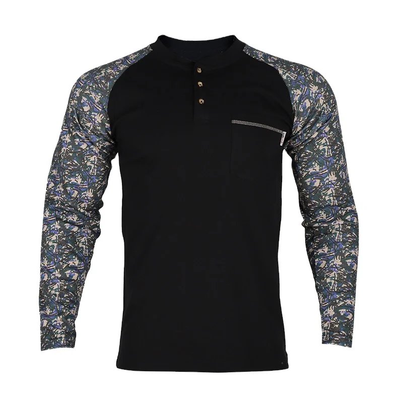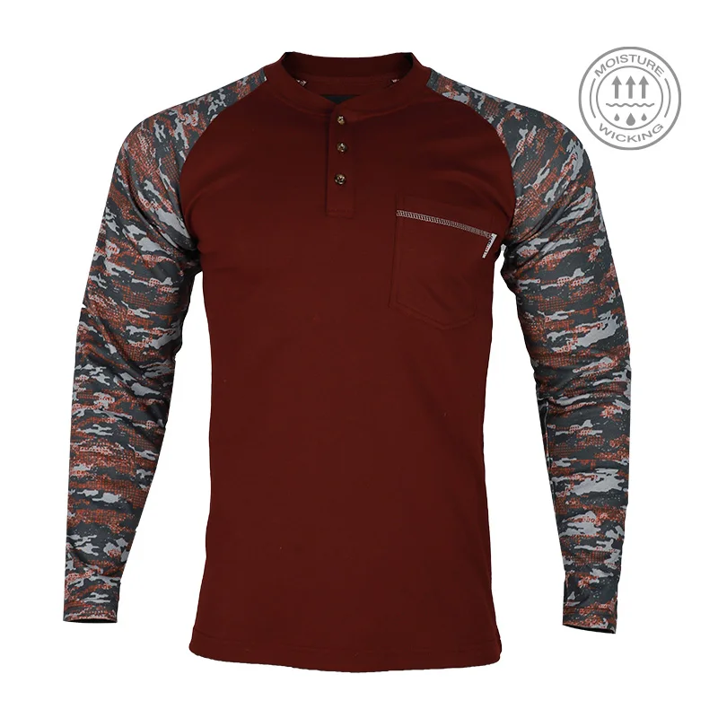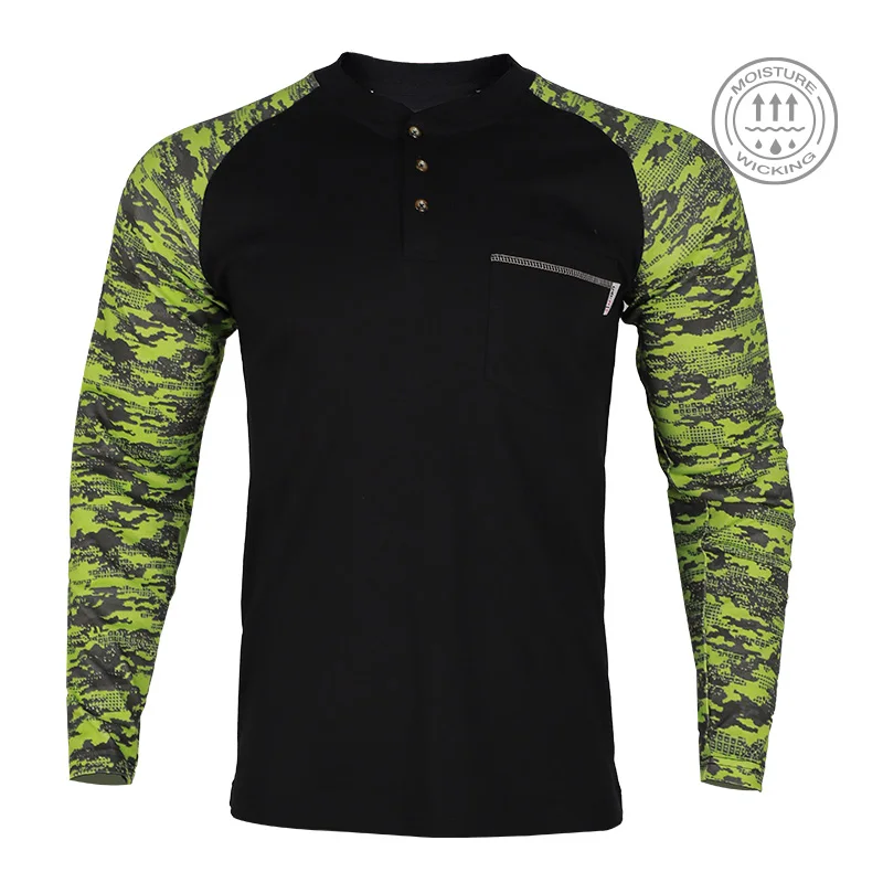 Custom OEM Welding Arc Flash Protective FR Cotton Long Sleeve Moisture Wicking Industrial Workwear Fire Resistant Henley Shirt