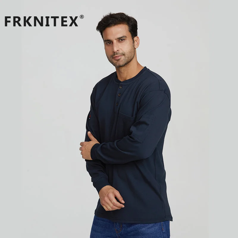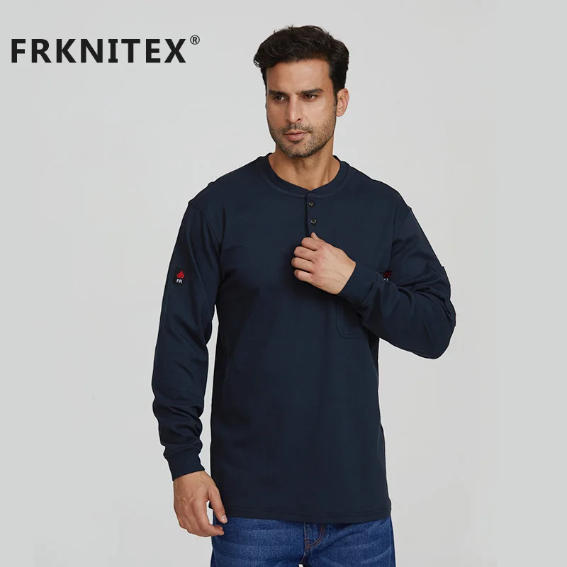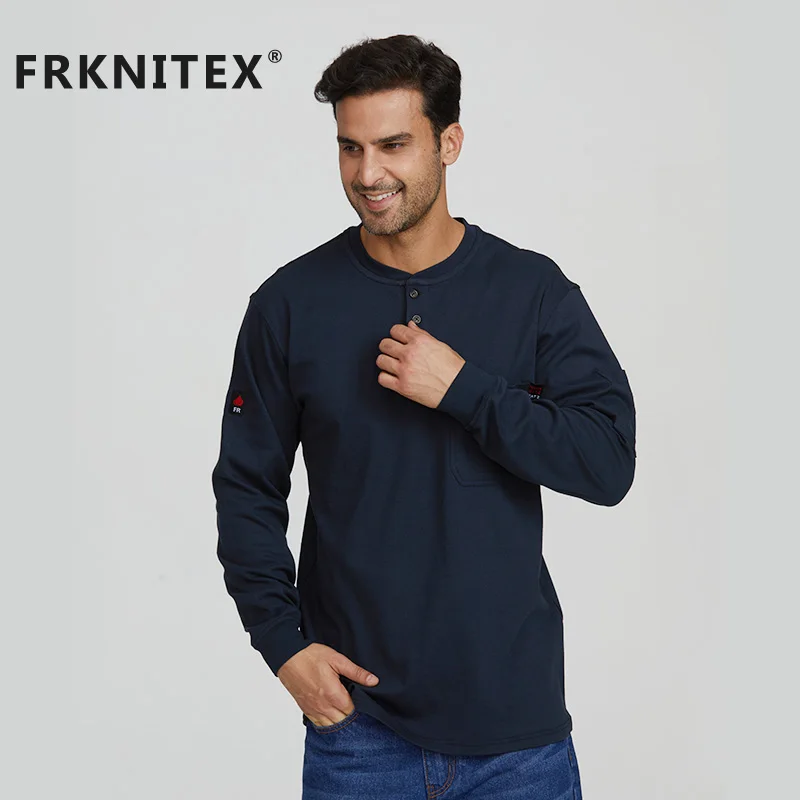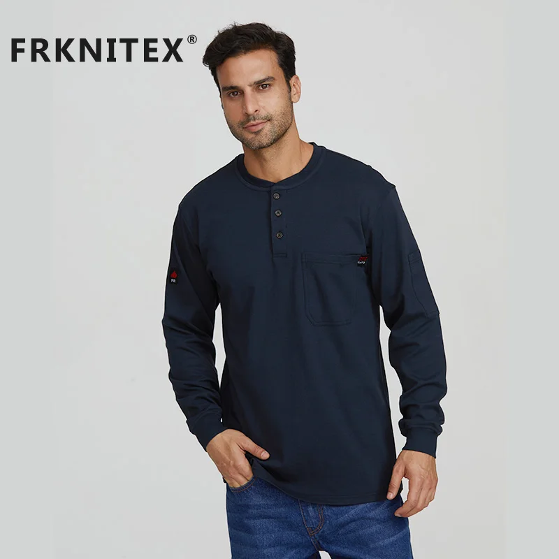 FR Flame Resistant Shirts FR T NFPA2112/CAT2 7oz Men's Long Sleeve Fire Retardant Henley Shirts