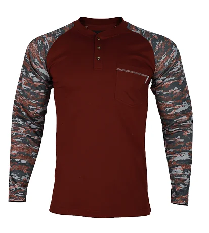 Wholesale Cotton Men Industrial Breathable Flame Resistant Work Wear Mechanic Welding Uniform Cotton FR Blend Henley Work Shirt