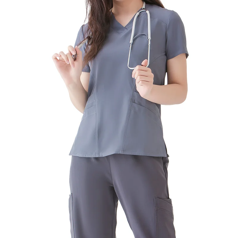 Custom Logo Hospital Scrubs Uniform Sets Woven Polyester Rayon Spandex Elastic Fabric