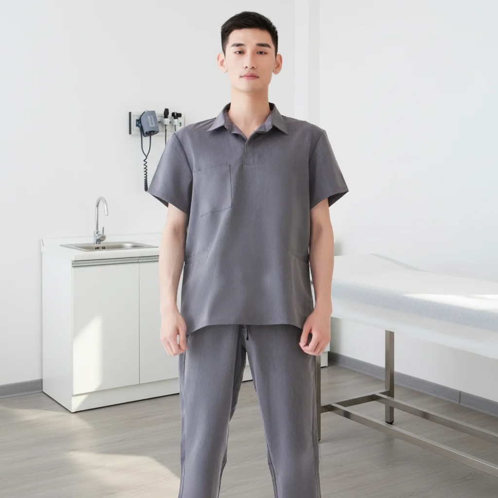 Fast Delivery Men's Scrub Jogger Sets Fitted Medical Clinic Uniform Woven Fabric Polyester/Rayon/Spandex