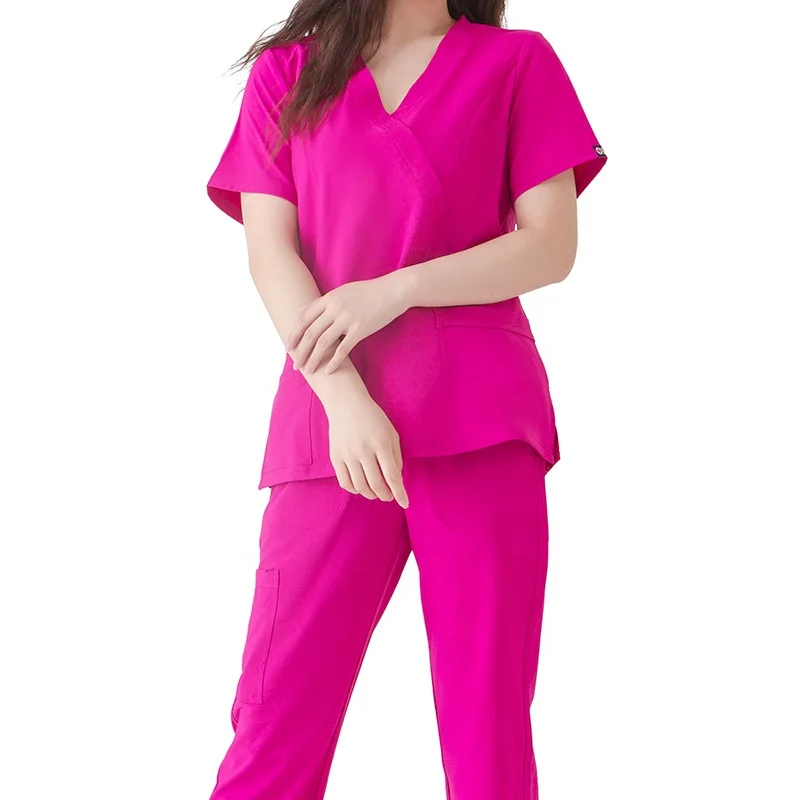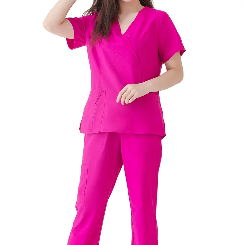 Women's Scrub Uniforms for Doctors and Nurses V-Neck Short Sleeve Tops & Straight Pants Woven Fabric Hospital Use