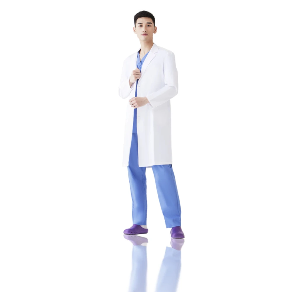 White Doctor Lab Coat Chemistry Long Sleeve Medical Coat for Men
