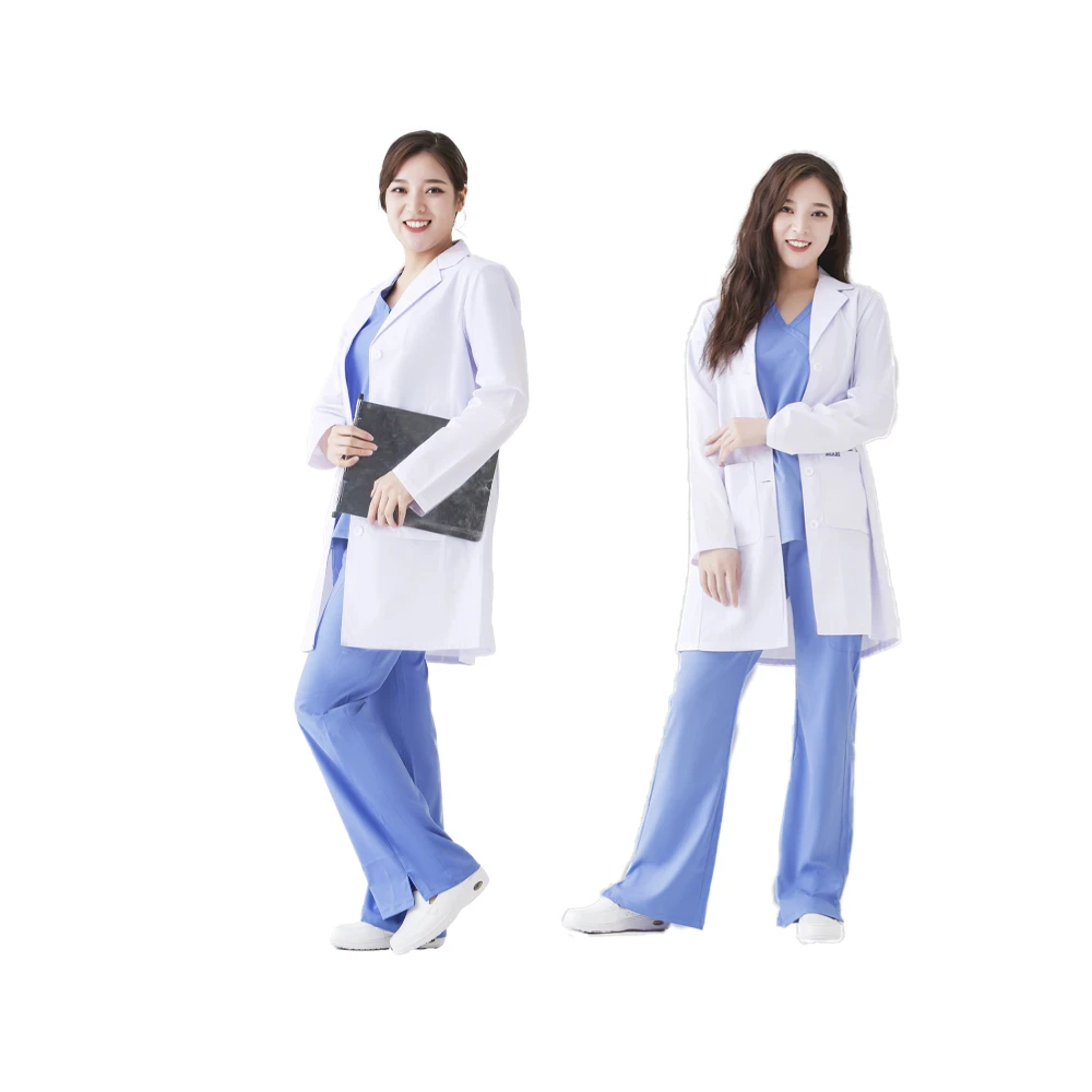 Factory Direct Women's Professional Hospital Lab Coat Long Sleeve White Woven Polyester/Cotton OEM Service