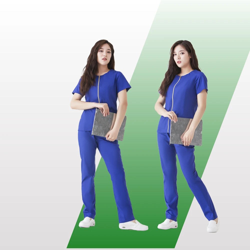 2026 Customized Premium Quality Women's Hospital Scrub Sets Stylish Zipper Cargo Pockets Workwear