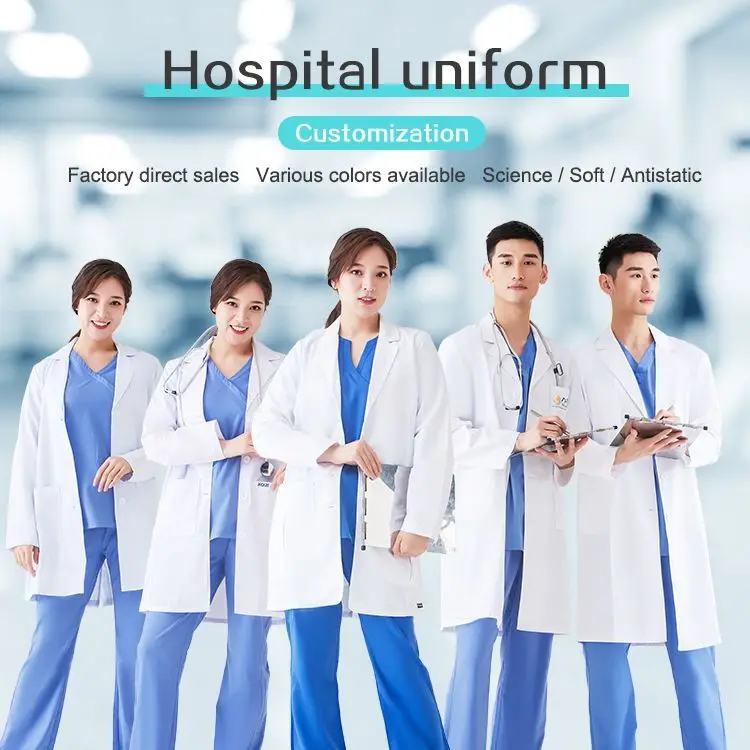 White Scrub Sets for Hospital Use Long Sleeve Unisex Medical Coat for Doctors and Nurses College Students