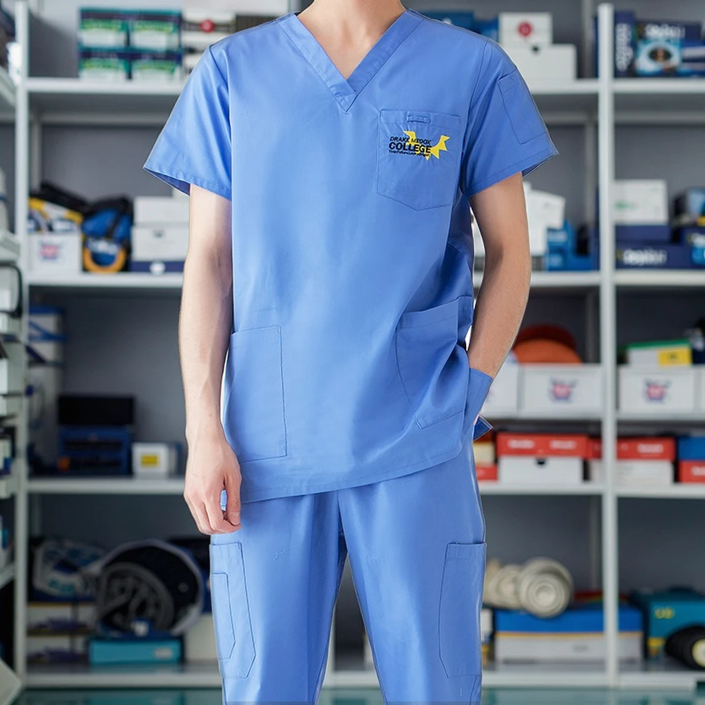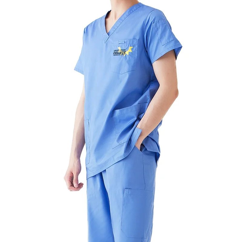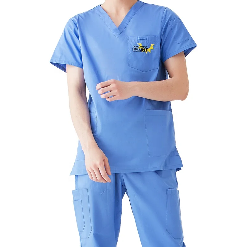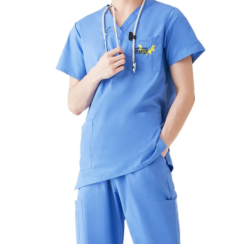Private Logo Men's Medical Scrubs Short Sleeve Hospital Uniforms Nursing Sets Wholesale Woven Fabric Polyester/Cotton