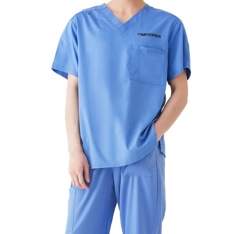 Wholesale Men's Fashionable Design Hospital Scrub Uniforms Nurse Medical Uniforms Woven Fabric Polyester/Rayon/Spandex