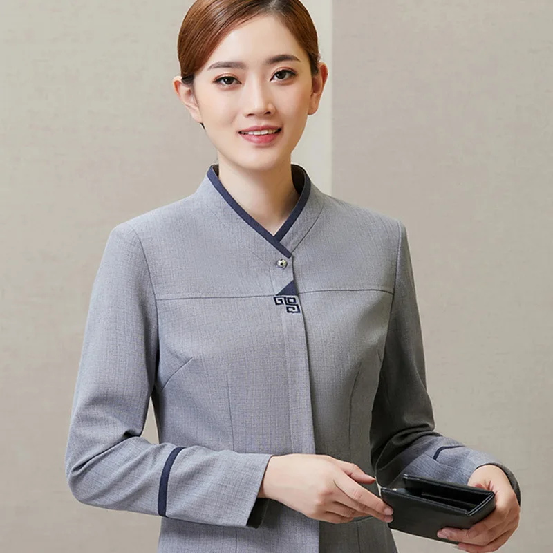 YouBu Unisex Housekeeping Workwear Long Sleeve Moisture Wicking 100% Polyester Hotel Guesthouse Attendant Property Cleaning