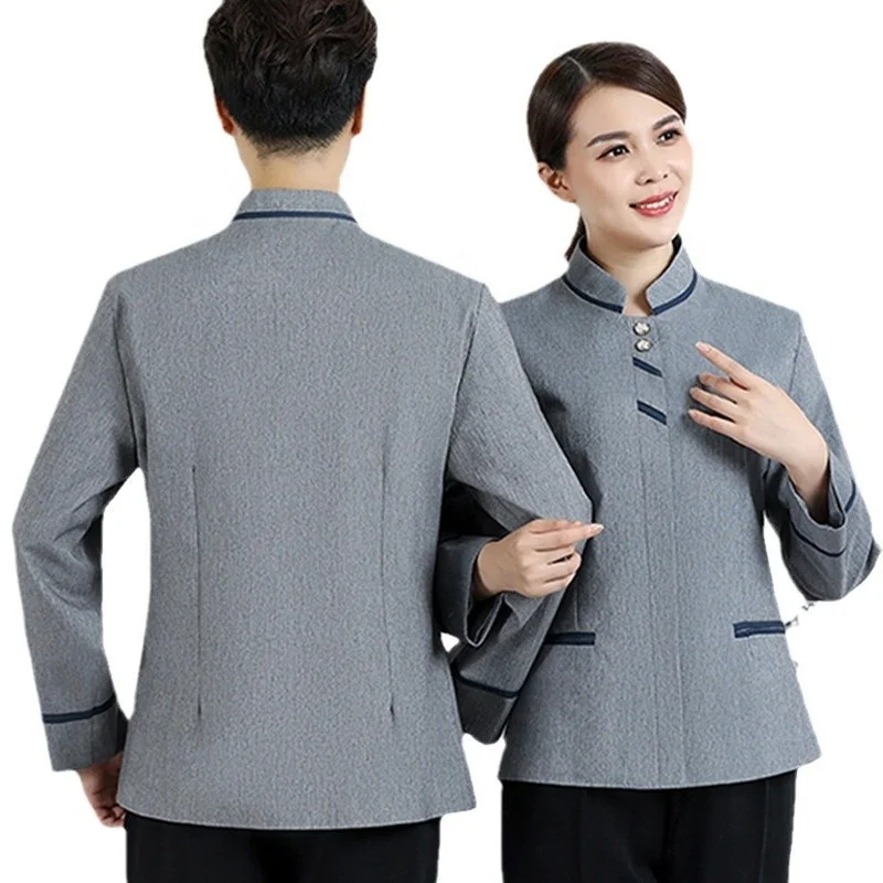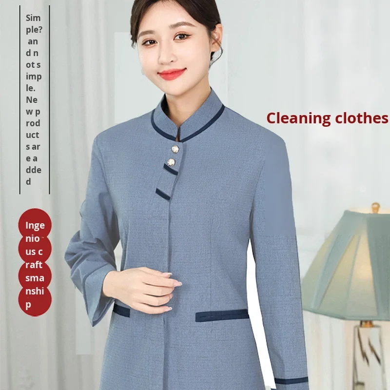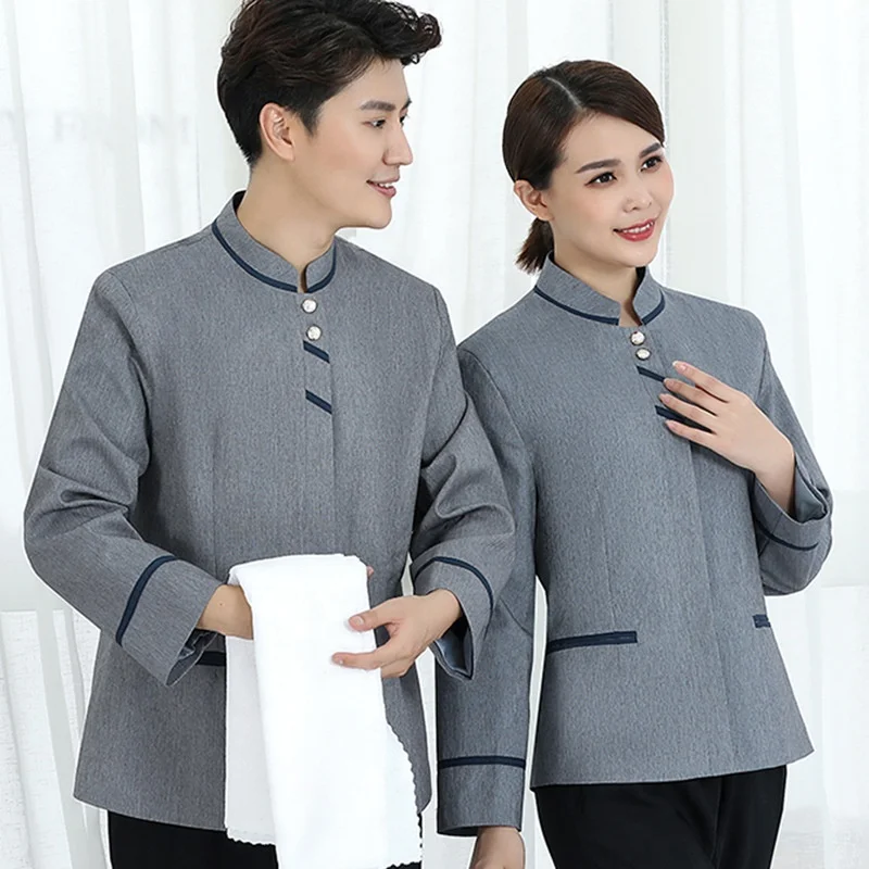 Cleaning Long Sleeve Unisex Summer Autumn Winter Hotel Reception Housekeeping Staff Clothing 100% Polyester Embossed Printing