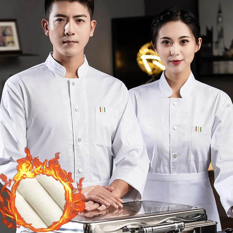 Autumn Winter Unisex Thickened Fleece-Lined Canvas Long Sleeve Chef Uniform Unisex Catering Hotel Restaurant Baking Tops Sets